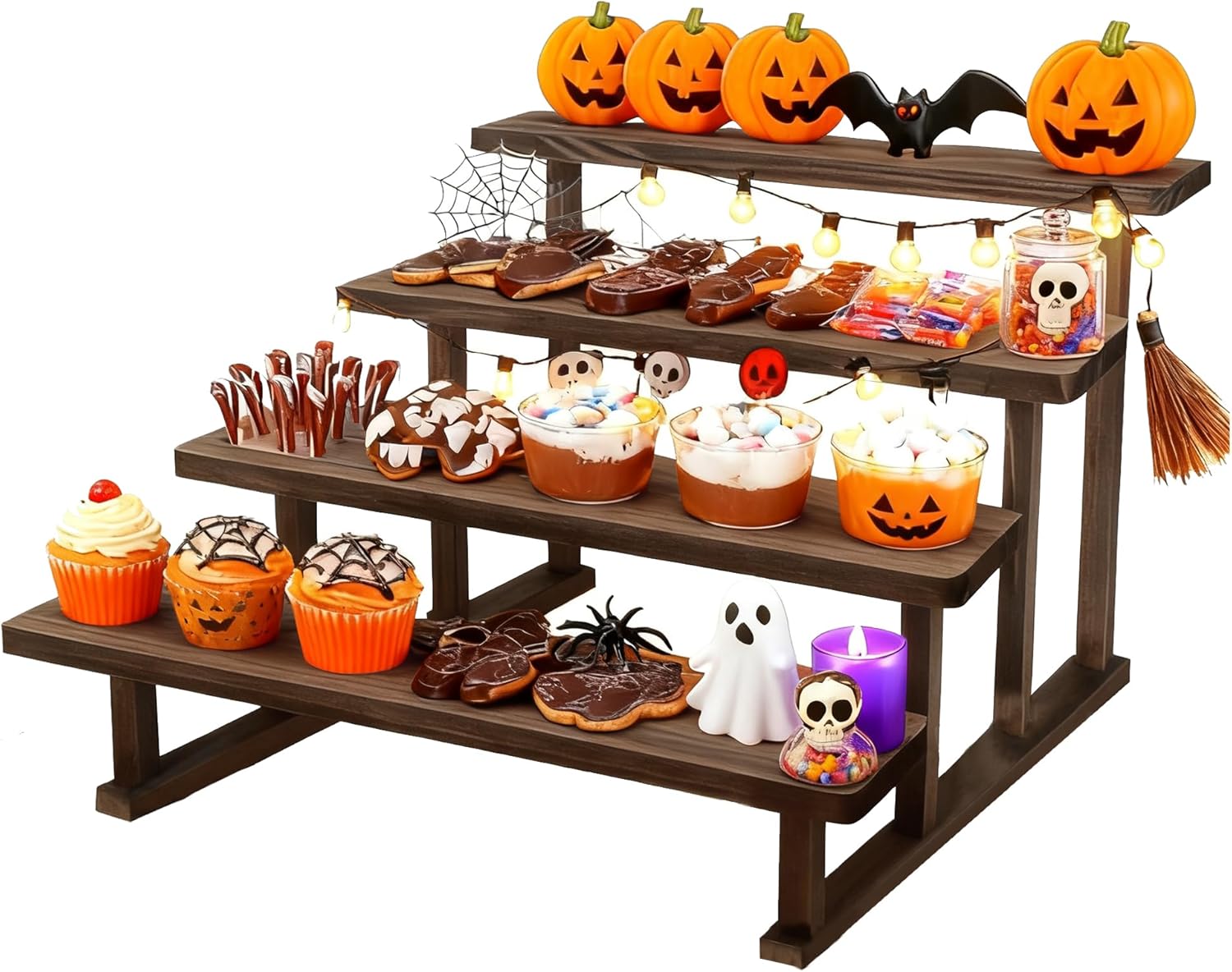 4 Tier Wooden Display Riser Stand, Cupcake Display Shelf Tabletop Spice Rack for Party, Kitchen, Perfume, Fragrance, Vendors event