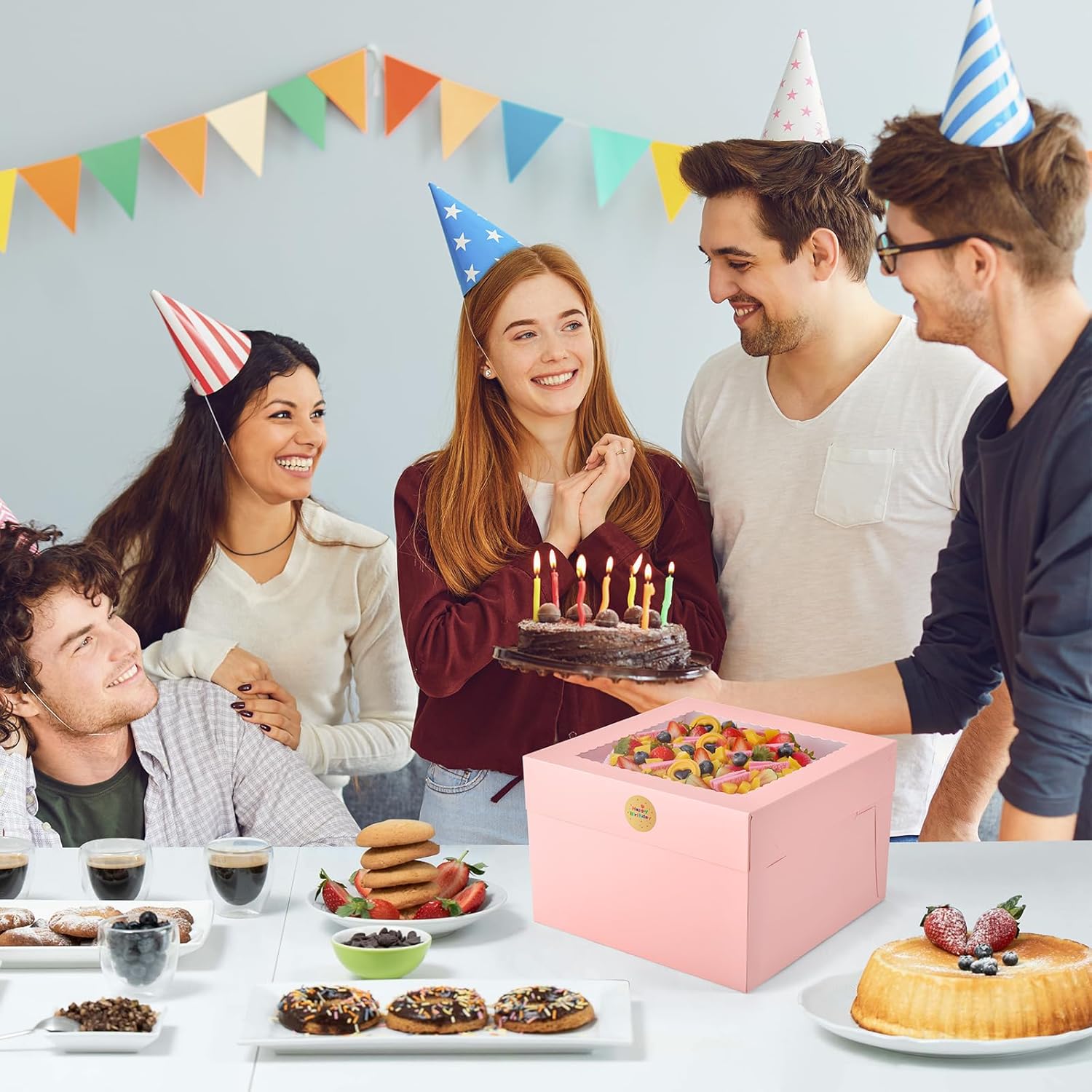 - Easy to Fold: Designed for convenience, these pink cake safe transport box with window are flat and pre-folded, easy to assemble. Fold the cake pop boxes along the pre-folded crease, put in delicious cake, Blank sticker allows you to write warm message on it, attach the sticker to the bakery boxes, adds a personal touch to your gifts