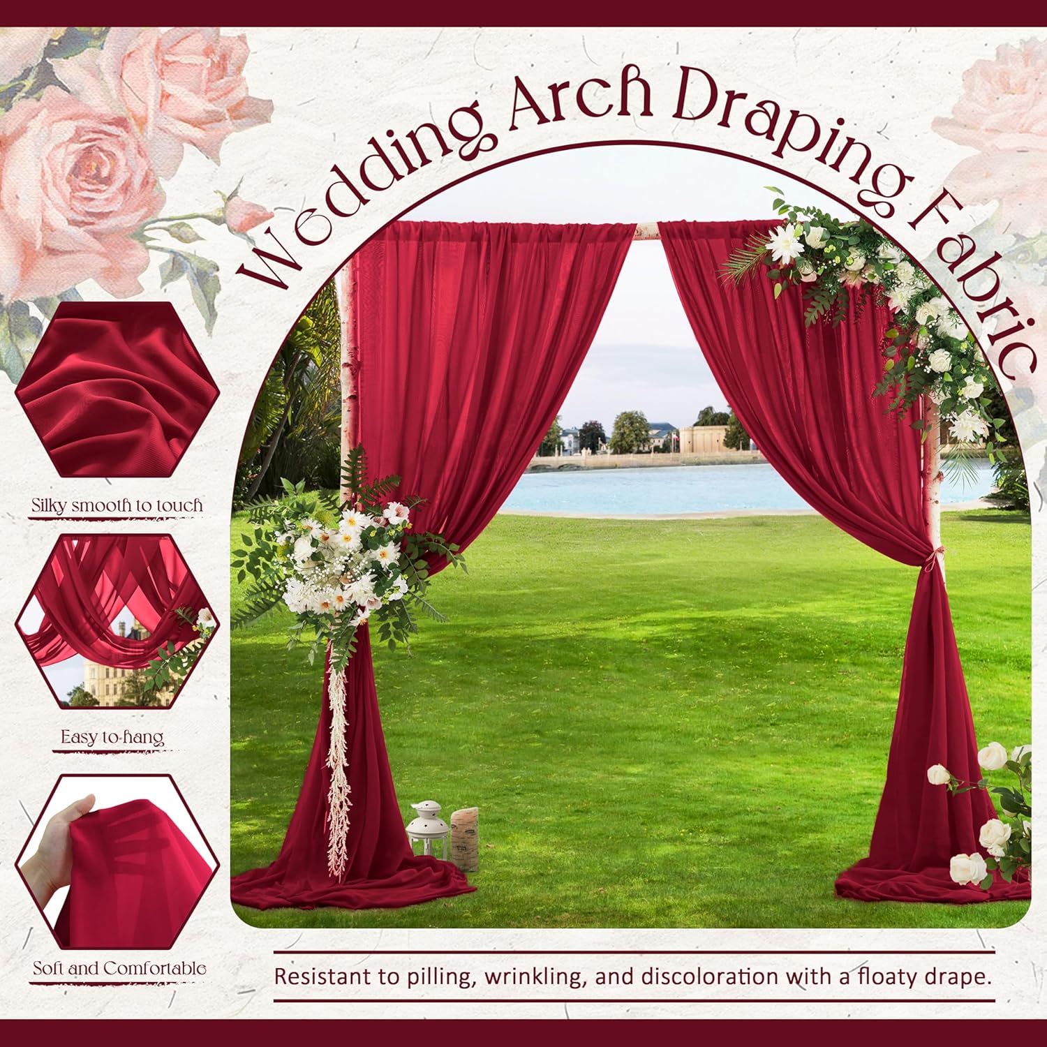 VACVELT Wedding Arch Draping Fabric - Burgundy Chiffon, 2 Panels Sheer Drapes, 30 Inch x 20ft Backdrop Curtain for Outdoor Wedding Ceremony Decor