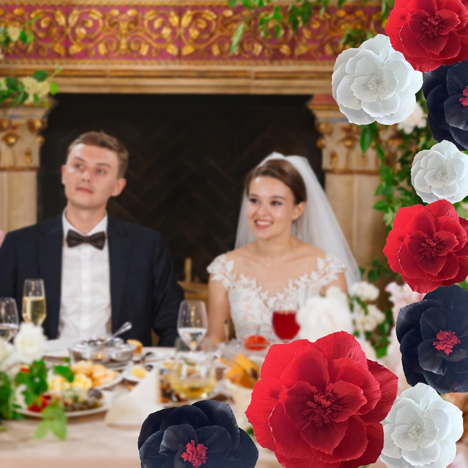 BRT Bearingshui Crepe Paper Flowers Decoration for Wall Total 9 Pcs, Artificial Flowers for Wedding Flower Backdrop Decor, Baby Bridal Shower Birthday Party, Red Black White 3D Wall Flowers Decor