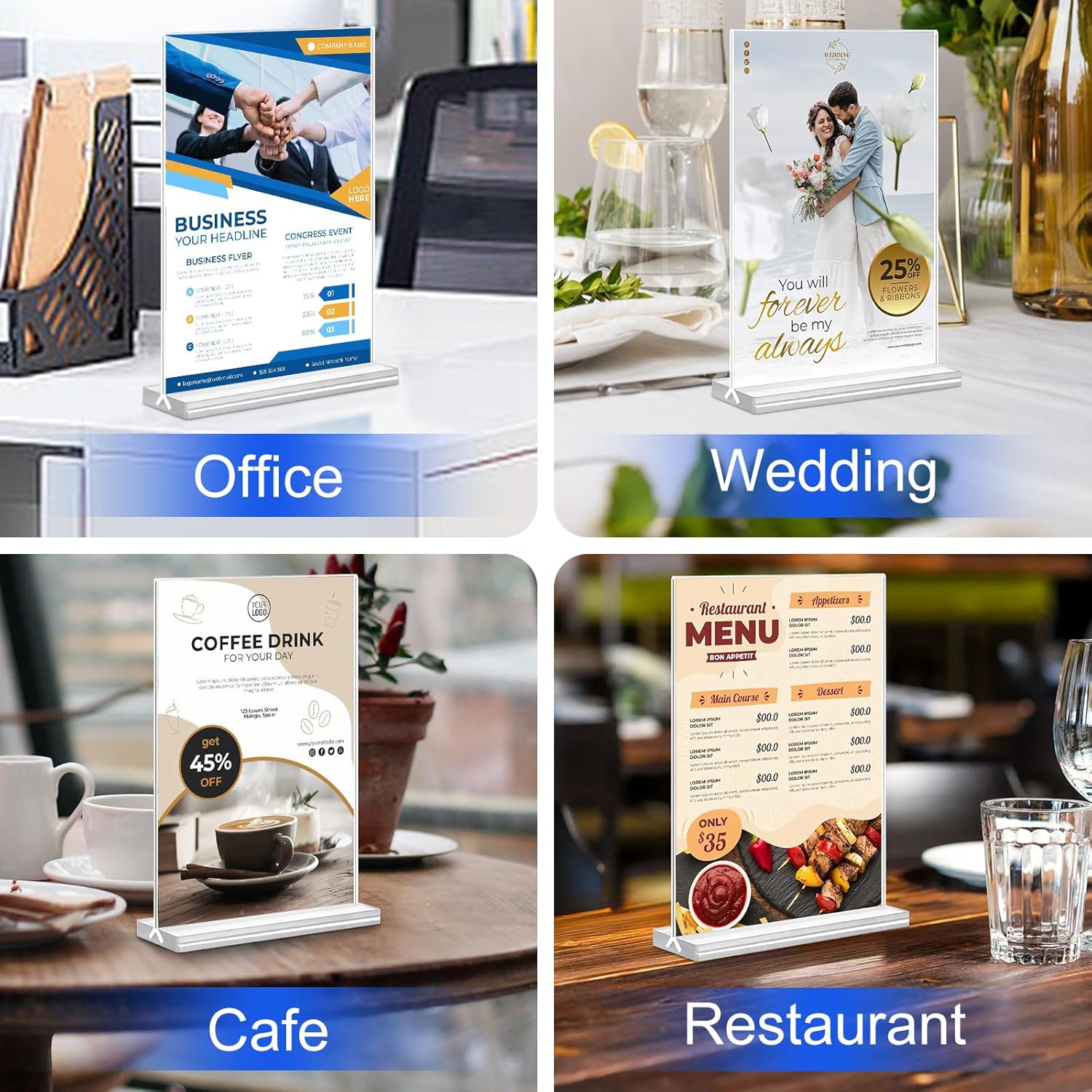 Acrylic Sign Holder 4x6 Inches 24 Pack, Double Sided Clear Display Stand Table Top Sign Paper Holder, Vertical Menu Flyer Holder, Plastic Sign Frame for Stores, Restaurants, Hotels, Office