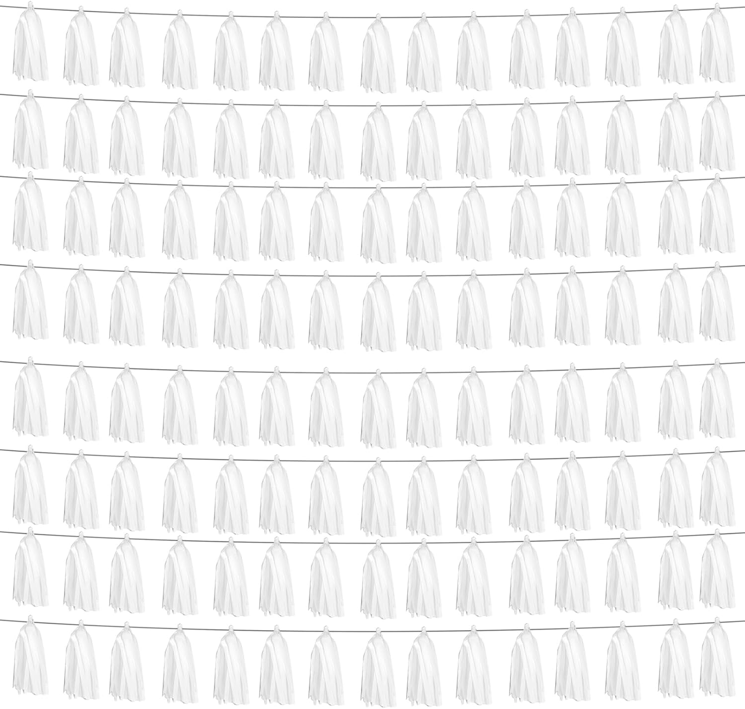 8P White Foil Fringe Metallic Tassel Streamers Banner Tassel Garland for Parade Floats, Graduation, Wedding, Birthday, Halloween, Christmas, Bridal/Baby Shower Party Decorations