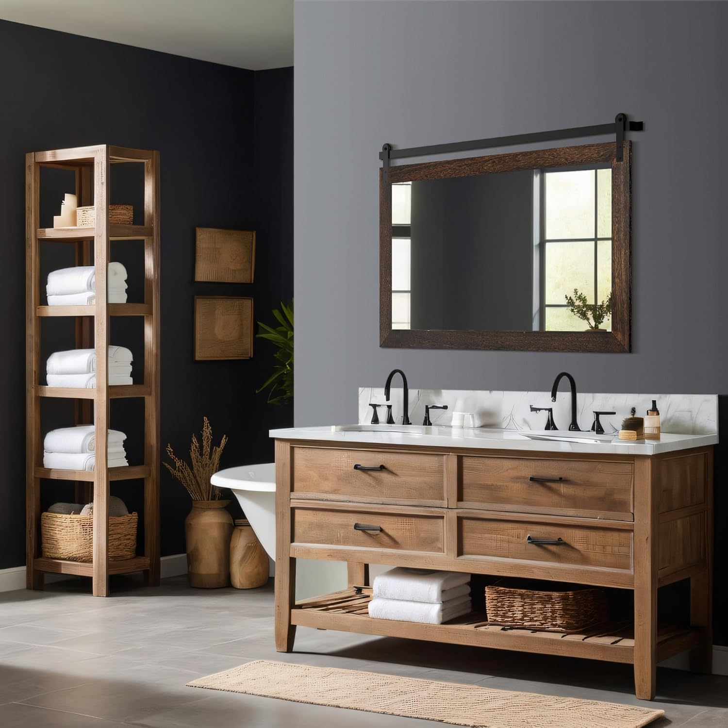 COGOOD Farmhouse Barn Door Mirror - 41 x 26 Rustic Wood Framed Wall Mirror for Bathroom, Living Room, Entryway Wall Decor (Black Brown)