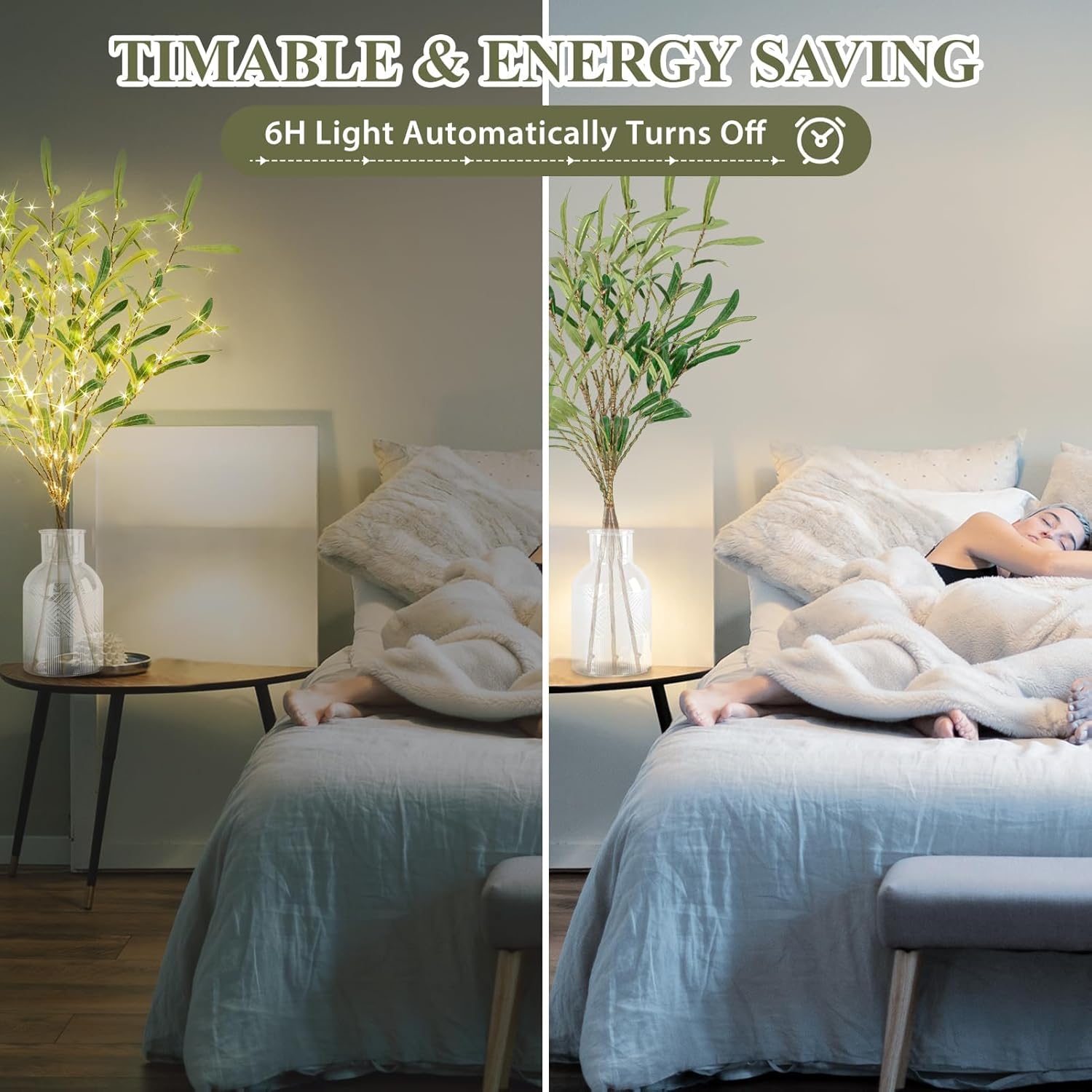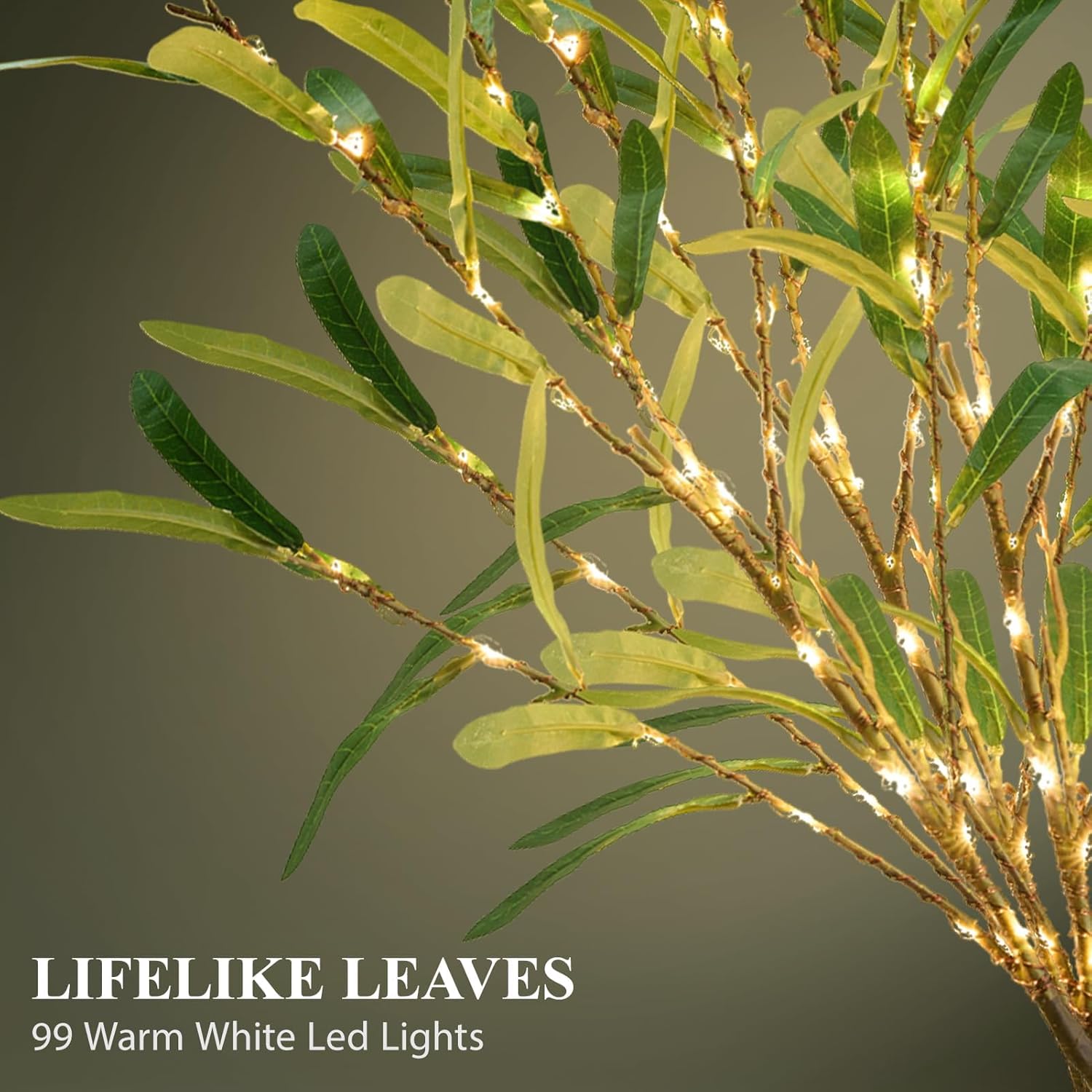- 【Exquisite Appearance】 Olive tree lights branches are a handcrafted high-quality product with lifelike leaves and bark, you can even clearly see their texture, just like real eucalyptus branches. Its presence will add a splash of vibrant green and soft white light to your home so that your room not only has the warmth of the home but also the vitality of nature.