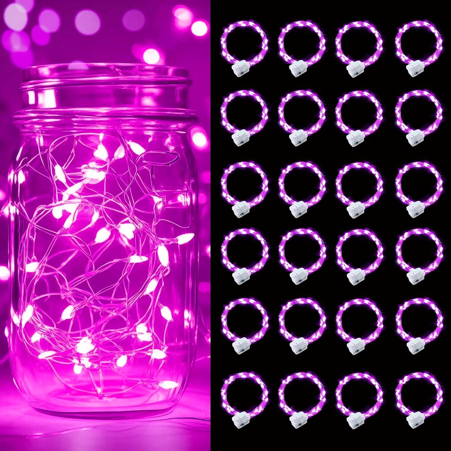 pozzolanas 24 Pack Pink Battery Operated String Lights - 7ft Waterproof Fairy Lights with 20 LEDs for Home, Mason Jar, Party, Wedding, Halloween, Christmas Decorations