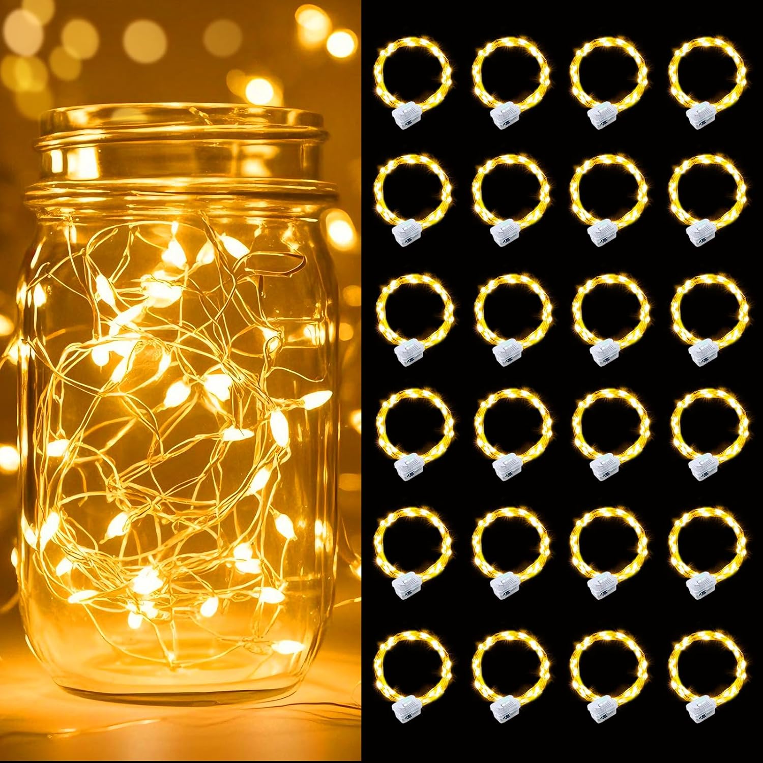 pozzolanas 24 Pack Warm White Battery Operated String Lights - 7ft Waterproof Fairy Lights with 20 LEDs for Home, Mason Jar, Party, Wedding, Halloween, Christmas Decorations