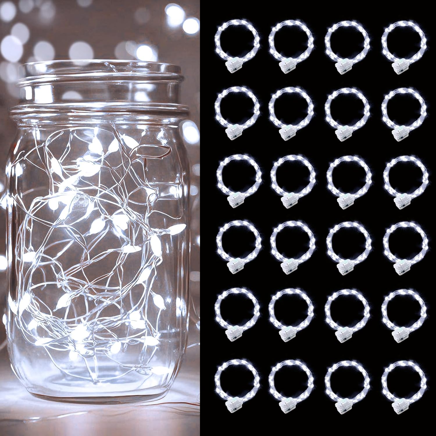 pozzolanas 24 Pack White Battery Operated String Lights - 7ft Waterproof Fairy Lights with 20 LEDs for Home, Mason Jar, Party, Wedding, Halloween, Christmas Decorations