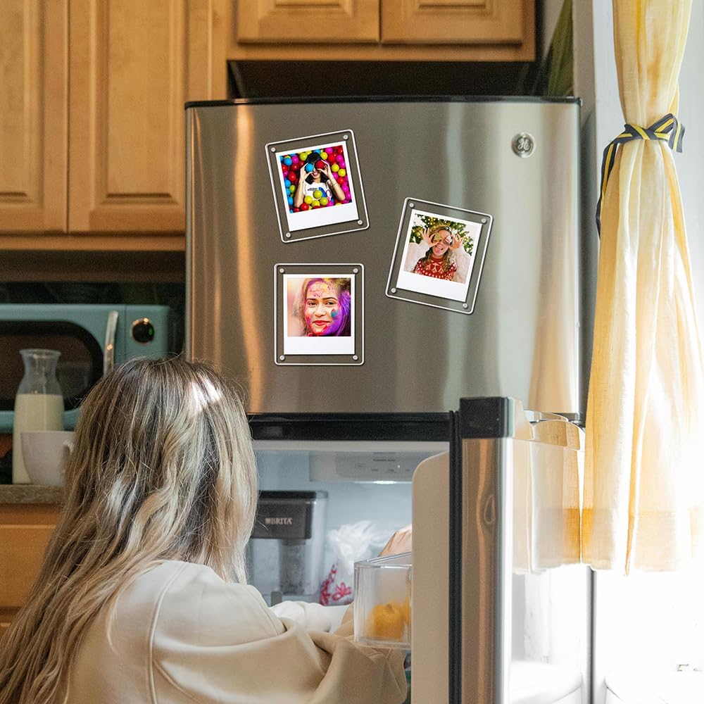 Acrylic Magnetic Refrigerator Picture Frames, 4.2"*3.46" Magnetic Fridge Clear Photo Frames Compatible with Polaroid Camera Instax Wide 300/210/200 Films for Refrigerator/Locker/Wall, 6Pack