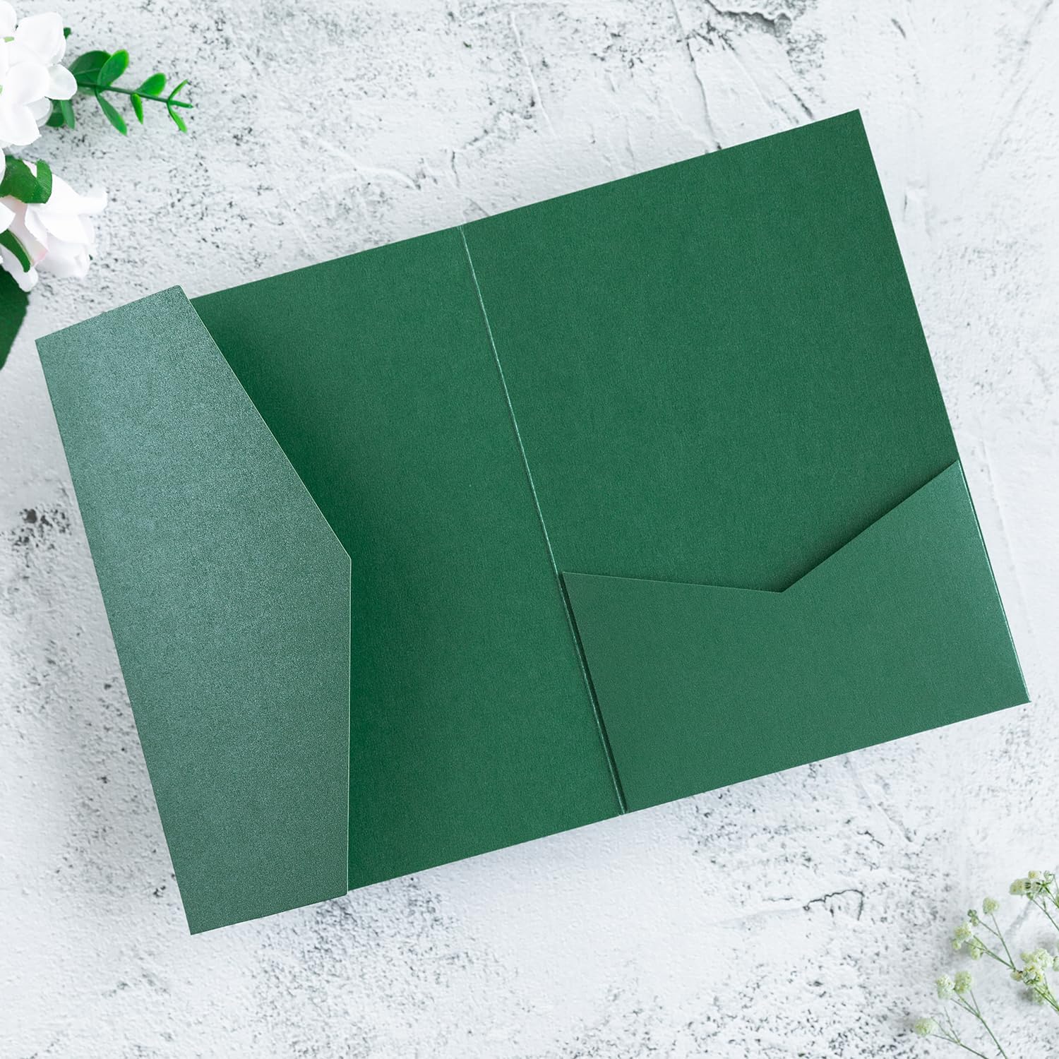 - High Quality -- The green tri-fold invitation pockect is made from 250 gsm pearl paper, Very good quality and heavy, not easily deformed, Look simple and elegant.