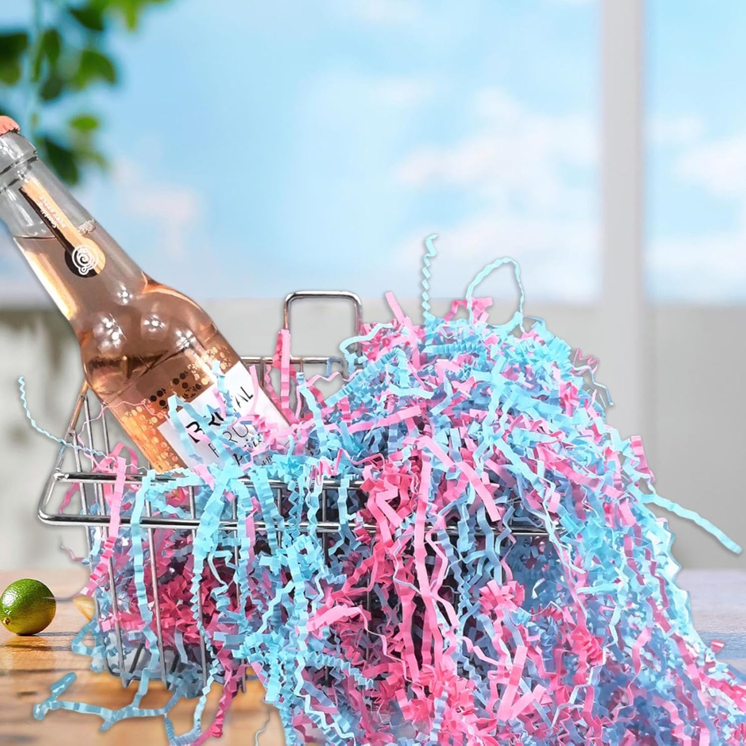 Zankubom 1 LB Crinkle Cut Paper Shred Filler Great for Gift Wrapping, Basket Fillers, Birthday, Gift Wrapping, Gender Reveal, Baby Shower, Christmas Party Decor Filling Supplies Pink Blue