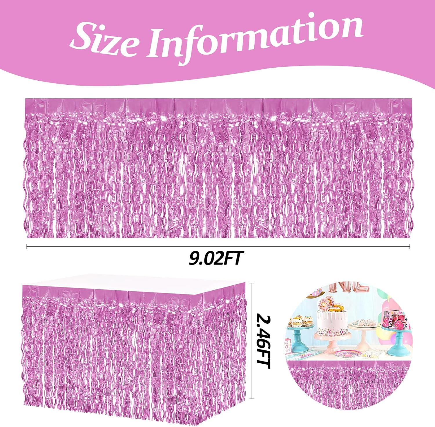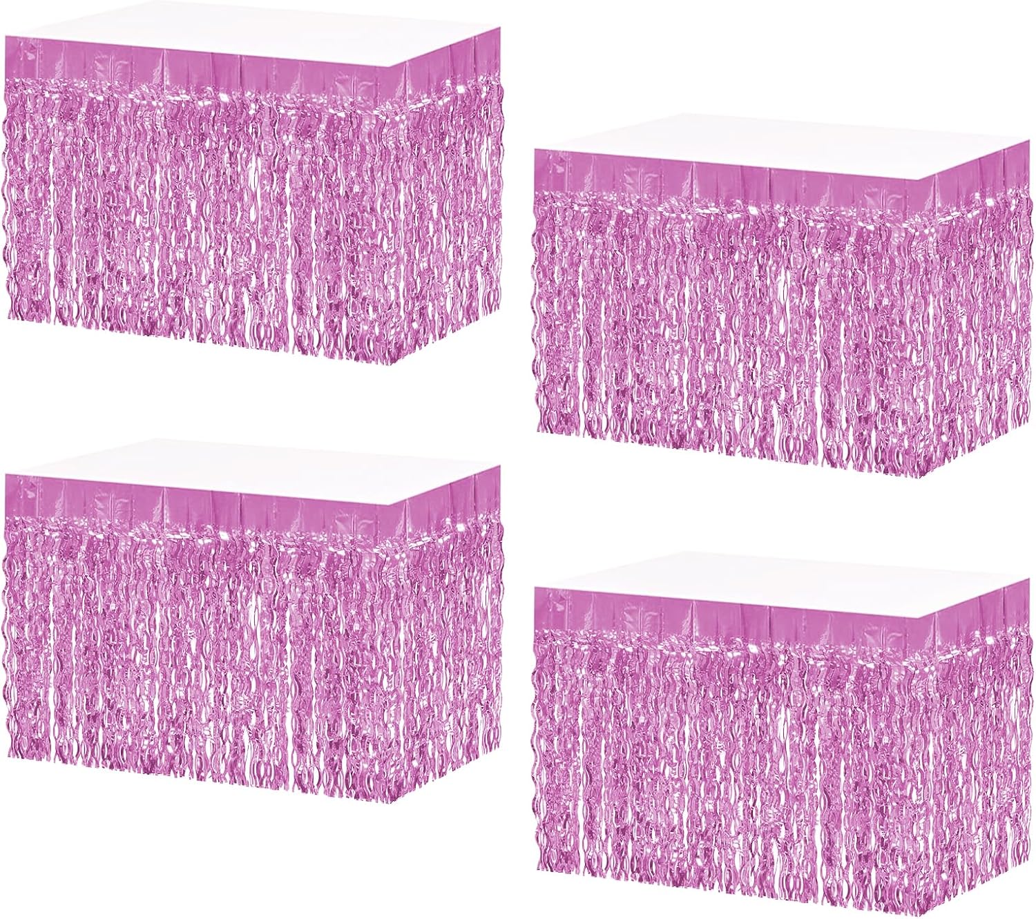 4P Wavy Metallic Tinsel Foil Fringe Table Skirts for Rectangle Tables Backdrop Garland Curtains for Parade Floats Wedding Birthday Parties Decoration Graduation 2025 Christmas (Pink)