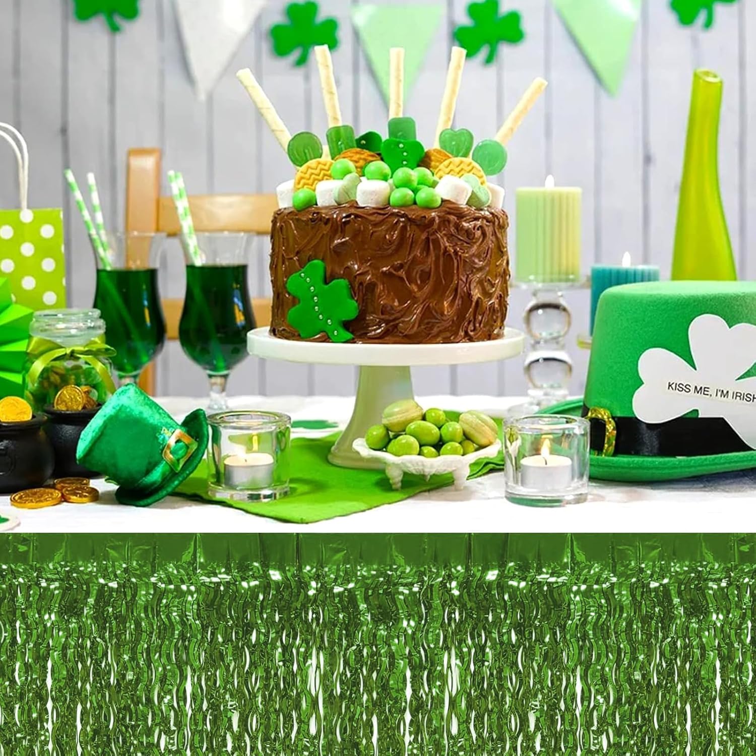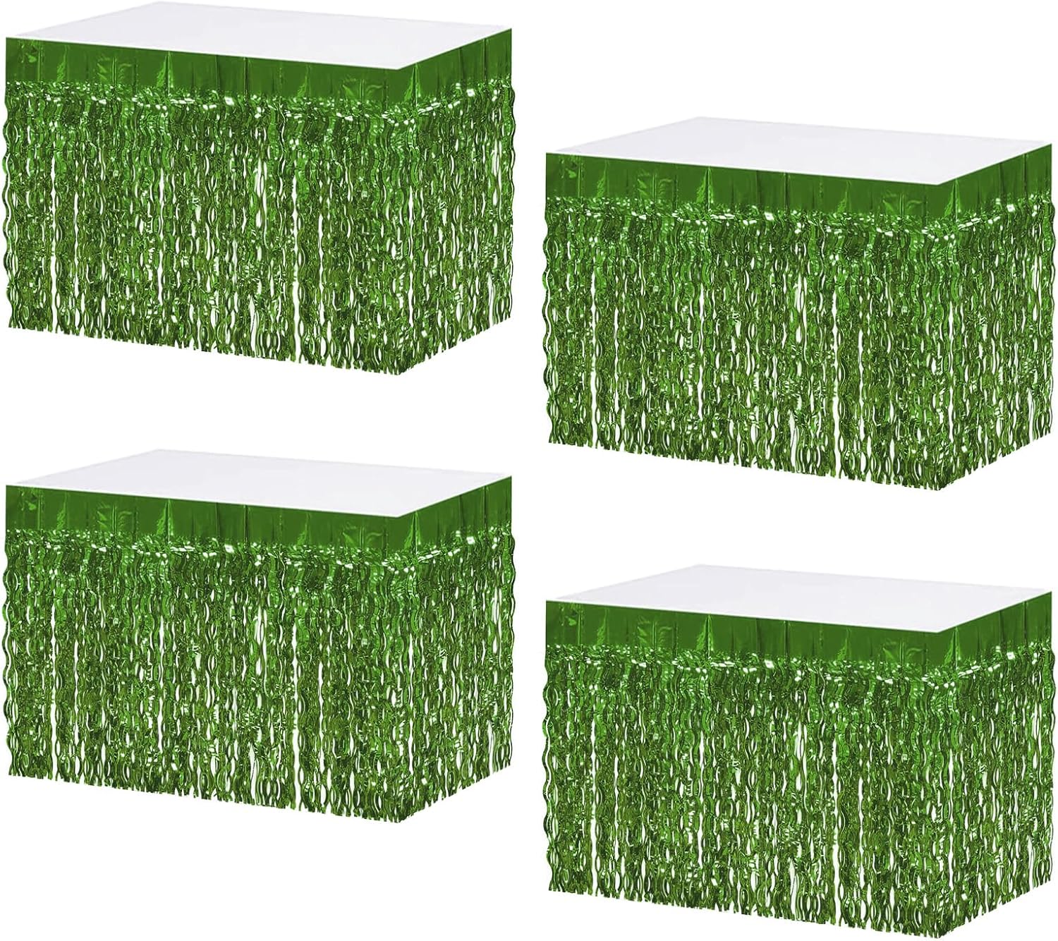 4P Wavy Metallic Tinsel Foil Fringe Table Skirts for Rectangle Tables Backdrop Garland Curtains for Parade Floats Wedding Birthday Parties Decoration Graduation 2025 Christmas (Light Green)