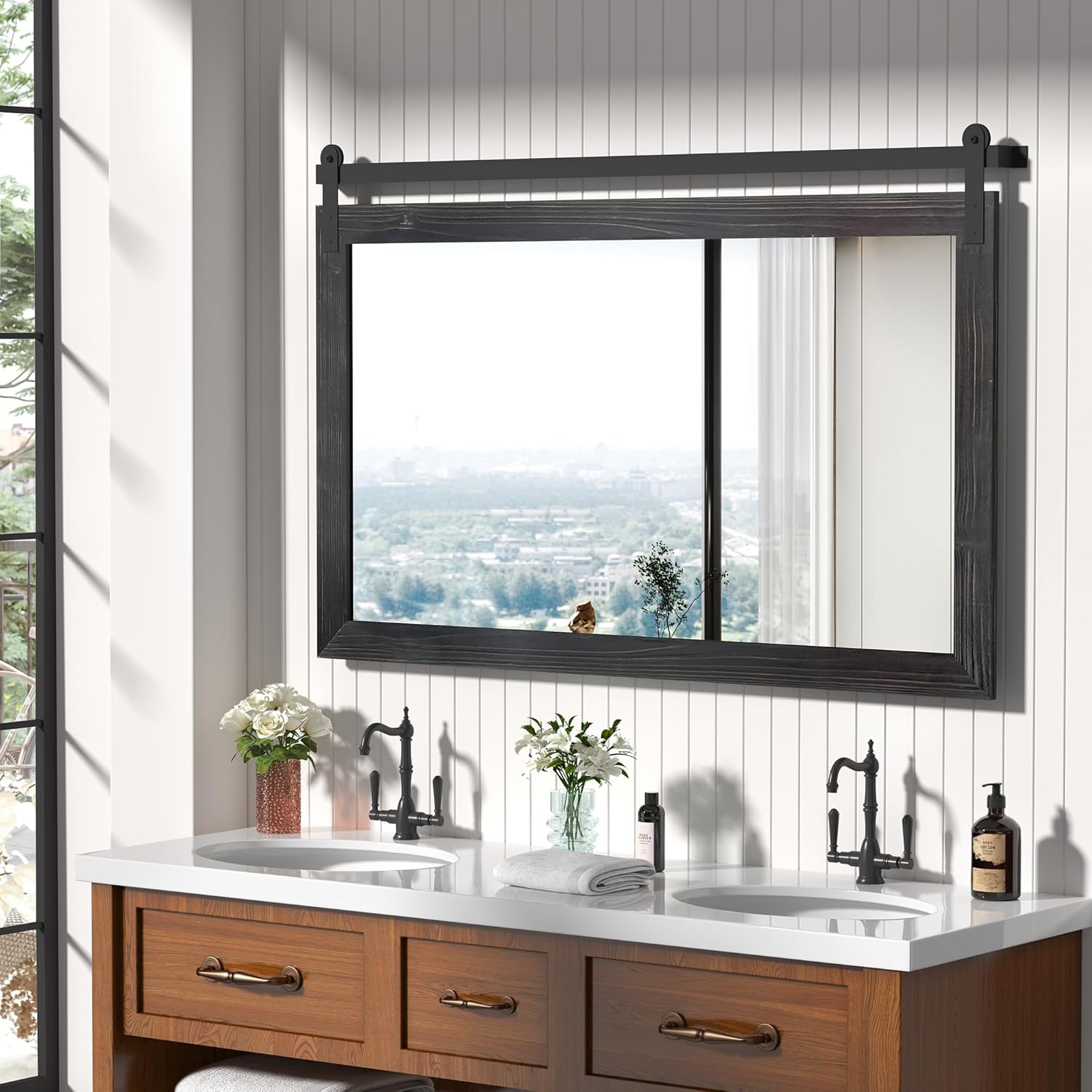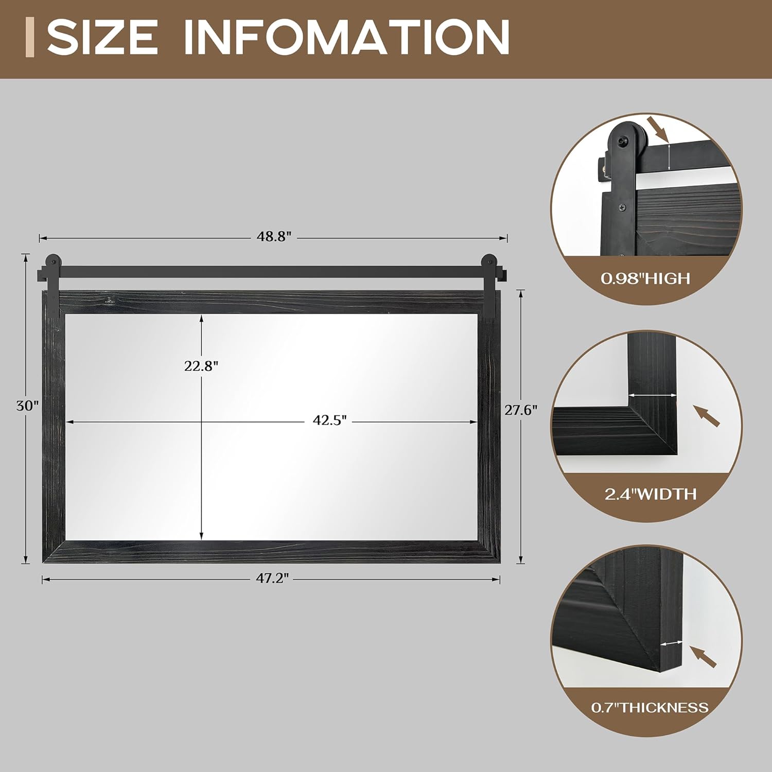 COGOOD Farmhouse Bathroom Mirror - 49 x 30 Rustic Wood Framed Wall Barn Door Mirror for Entryway, Living Room, Entryway Wall Decor (Black)