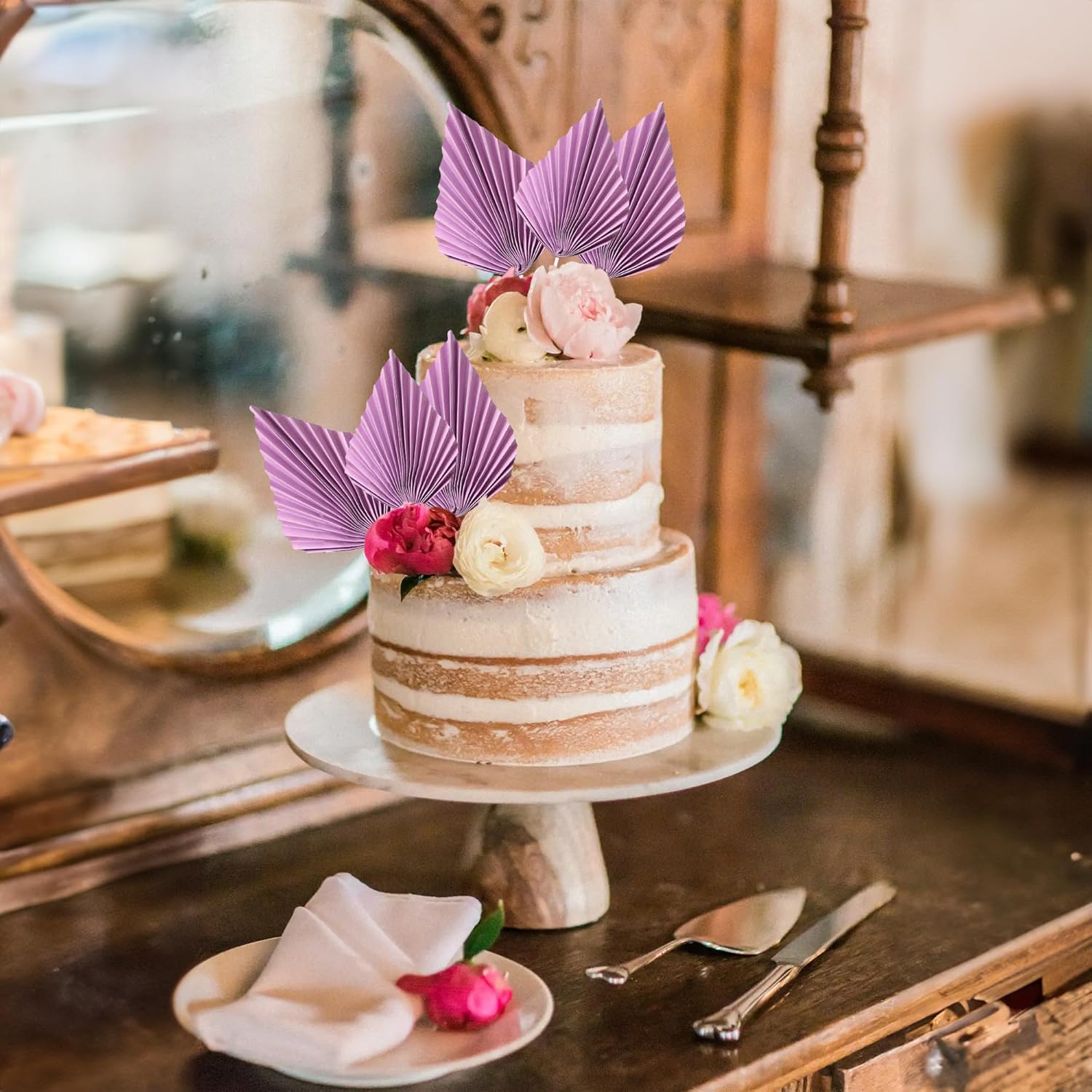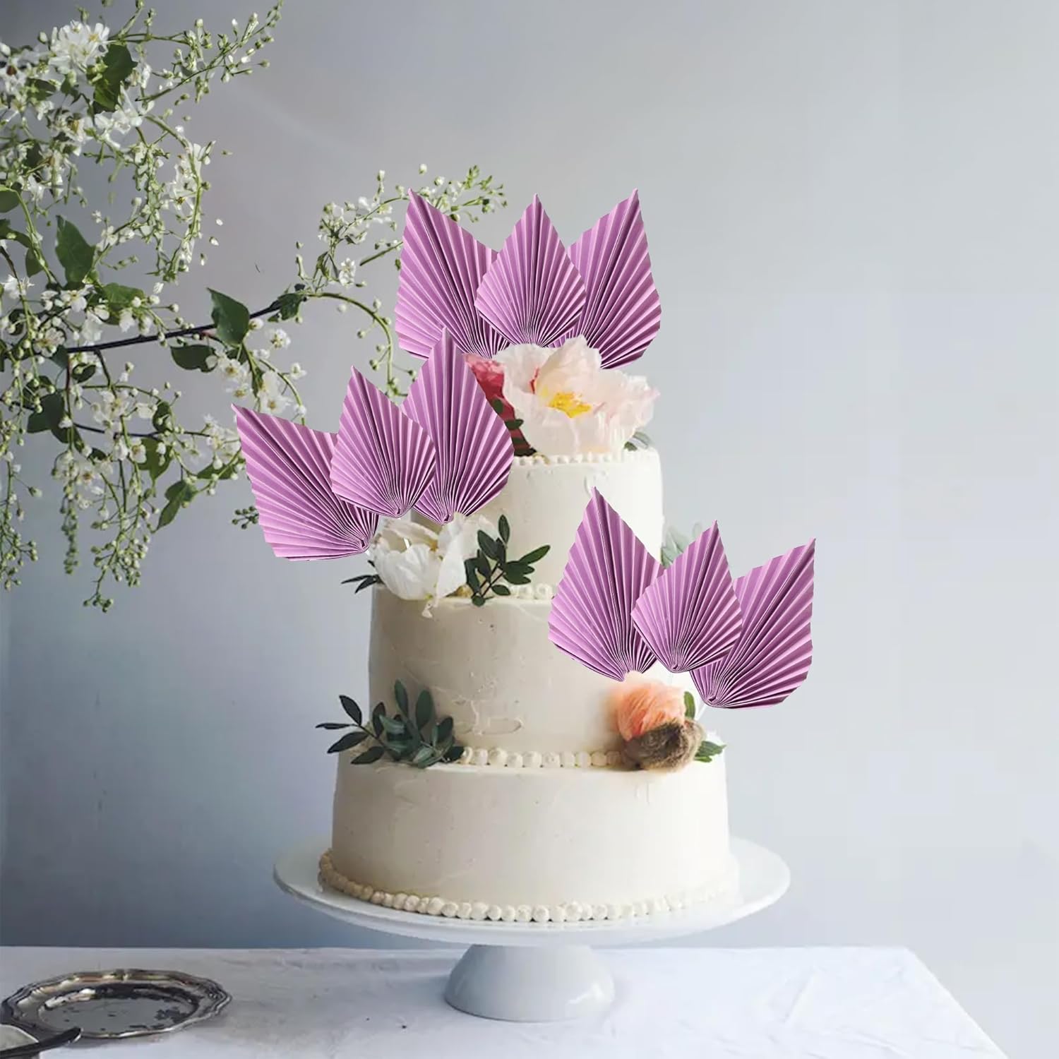 Ephlyn 6Pcs Paper Palm Fan Cake Topper Palm Spear Leaves Fan Cake Pick for DIY Craft Project Home Made Wedding Bridal Shower Birthday Anniversary Party Cake Decorations Purple