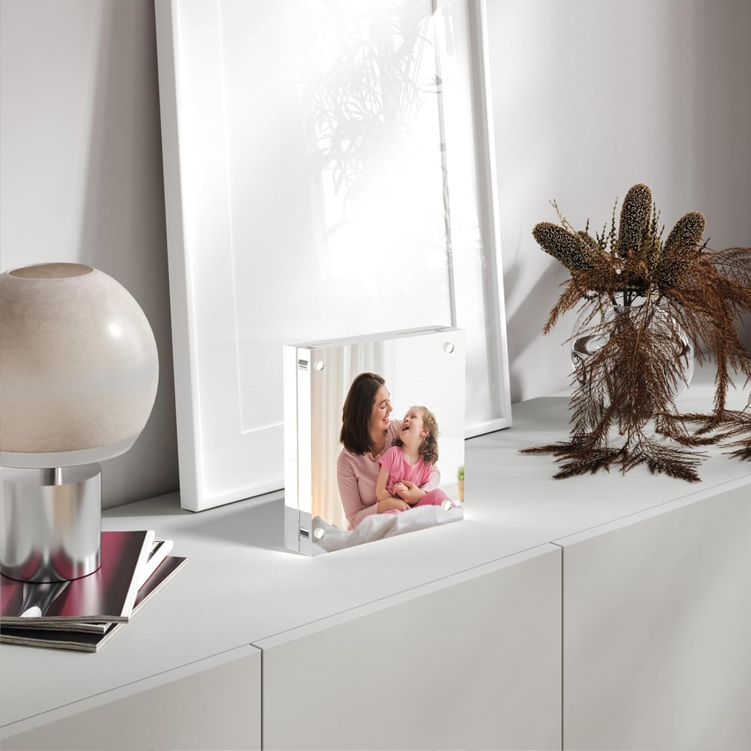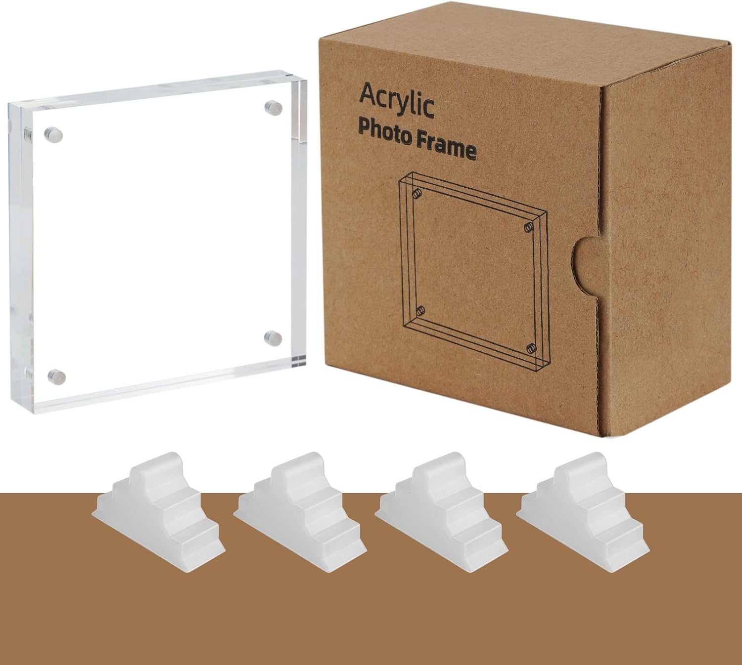 4x4 Acrylic Picture Frames, 20mm Thick Clear Frameless Magnetic Photo Frames, Double Sided Transparent Square Frame Gift for Desktop Display(3 Pack)