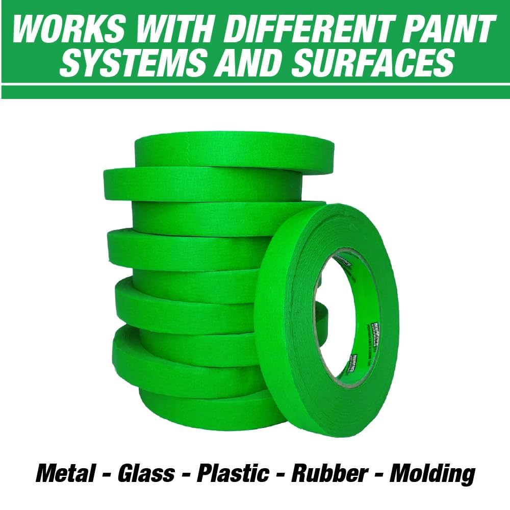 LAUCO DINOGREN High Performance Automotive Masking Tape – 0.75 Inch x 60 Yards (48 Rolls) – Green Tape for Car Paint, Body Shop Use, Heat & Water Resistant, Clean Removal, Multi-Surface Crepe Backed