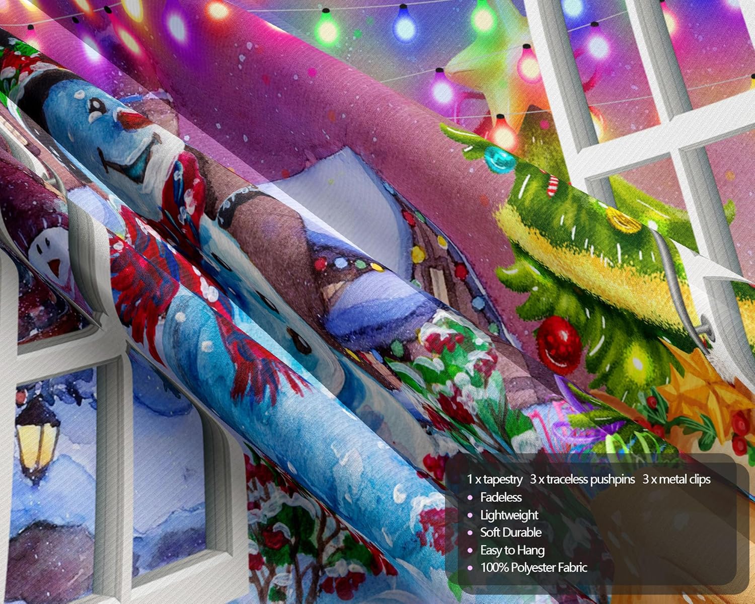 QGHOT Christmas Window Tapestry Wall Hanging, Christmas Backdrop Winter Window Wall Decor Xmas Snowman Deer Tapestries for Bedroom Living Room Dorm Holiday Party Decoration