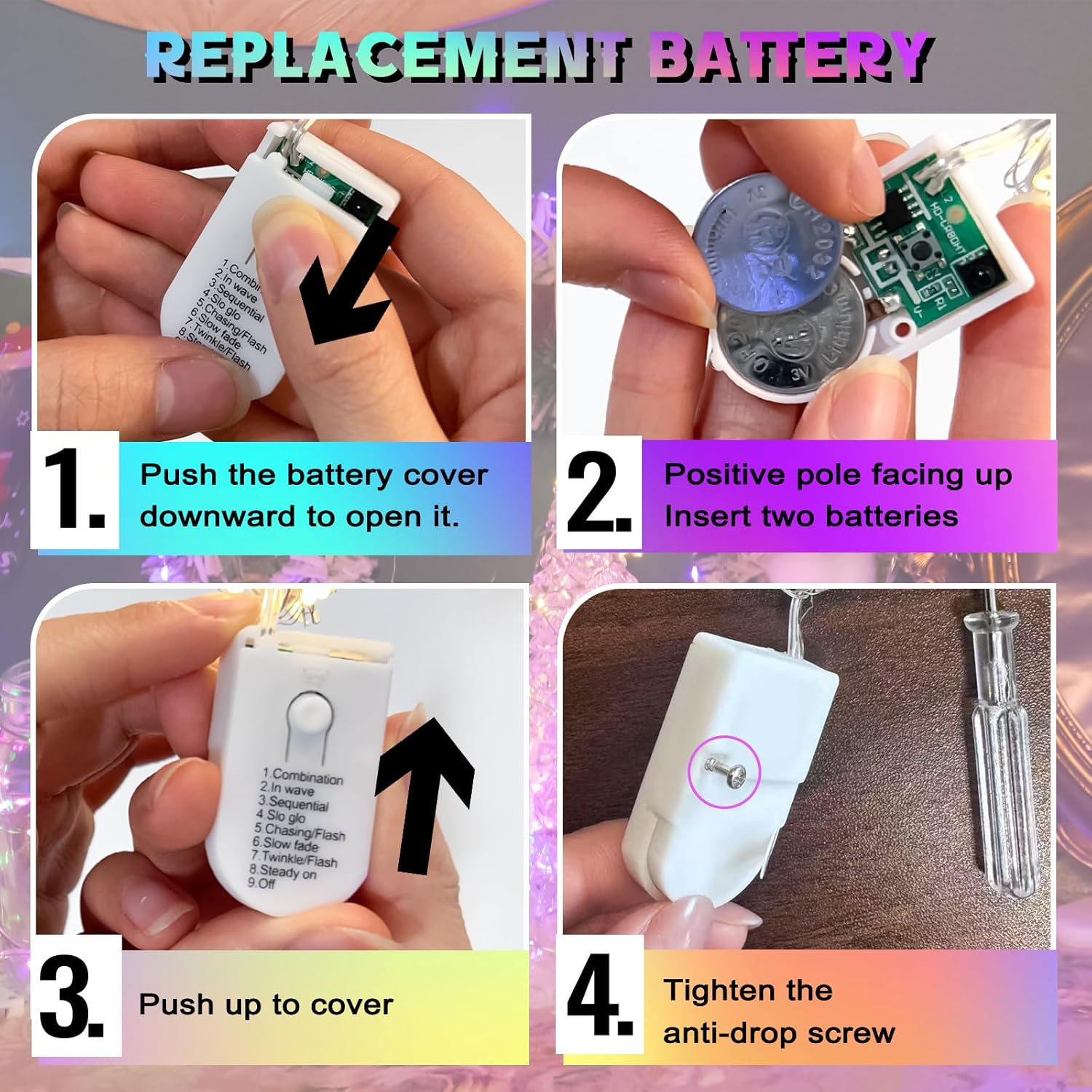 - 【Battery Powered & Remote Control】: Say goodbye to manual switches! Effortlessly control your lights with the included remote, adjusting settings from a distance for maximum convenience. Each light set is powered by 2 CR2032 batteries (included and replaceable).