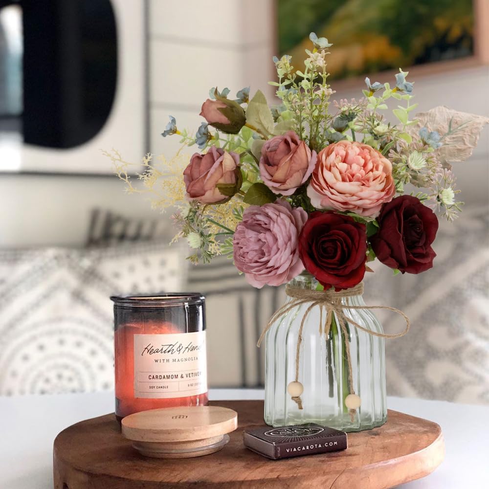 - Easy and Convenient to Decor: artificial flower bouquet has been matched by designers, the flower arrangements have been fixed with a string,you will get a bouquet in vase with a beautiful design .faux silk flowers are realistic and vibrant, easy care and last beauty.