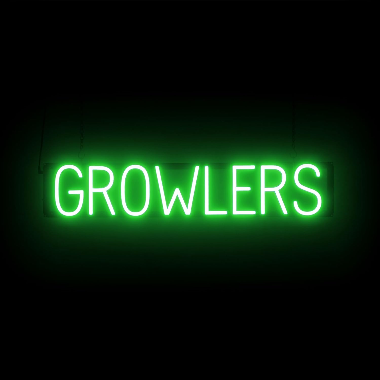 SpellBrite GROWLERS Sign | Beer-Related Sign with Neon Look, Green LED Light Source | 33.0" x 6.3"