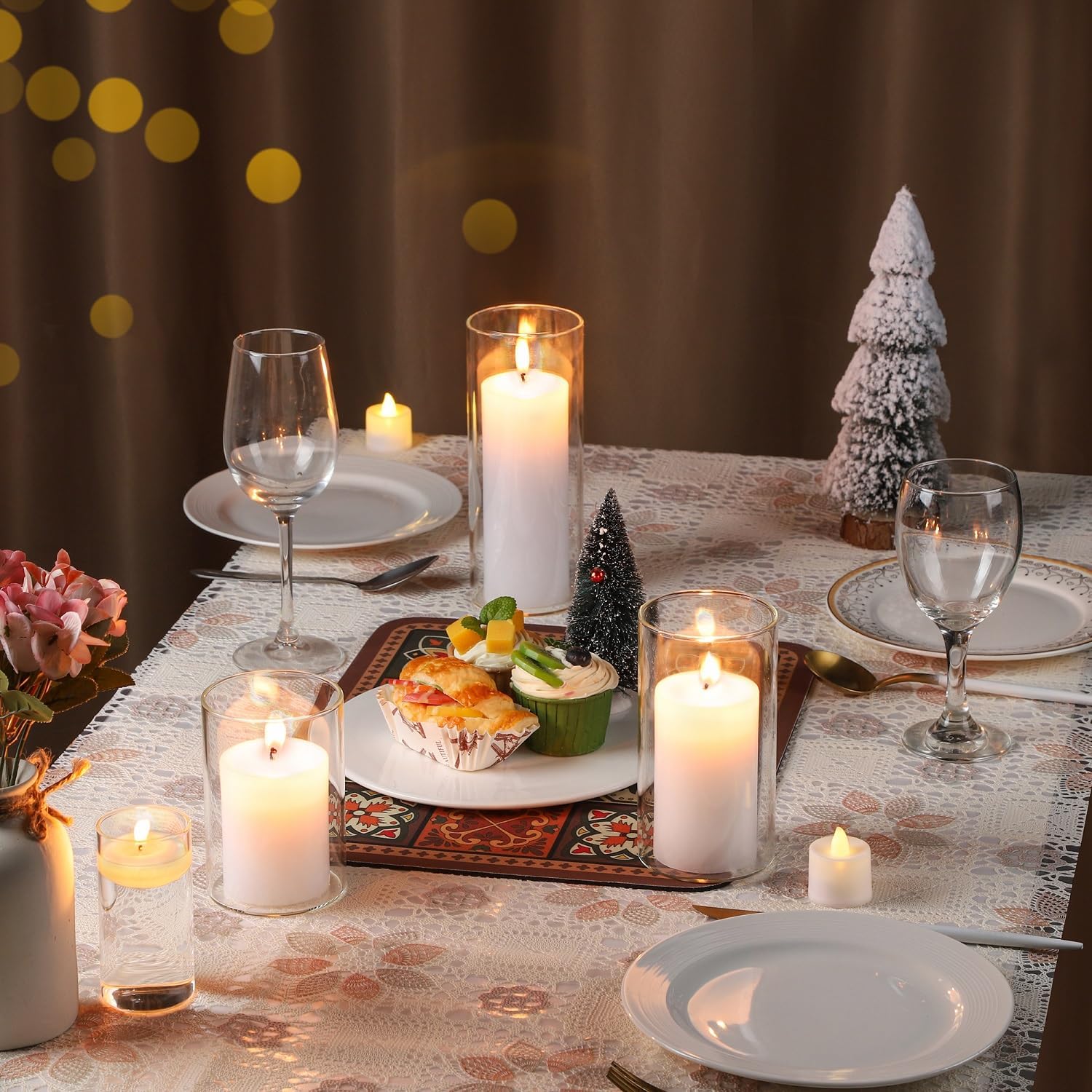 - High-Quality Materials: Crafted from premium heat-resistant borosilicate glass, our glass cylinder vases are durable and reliable, ensuring your decorations remain intact. The quality wax used in our white pillar candles guarantees long-lasting burn time, making them a trustworthy choice for Christmas, birthdays, and festivals