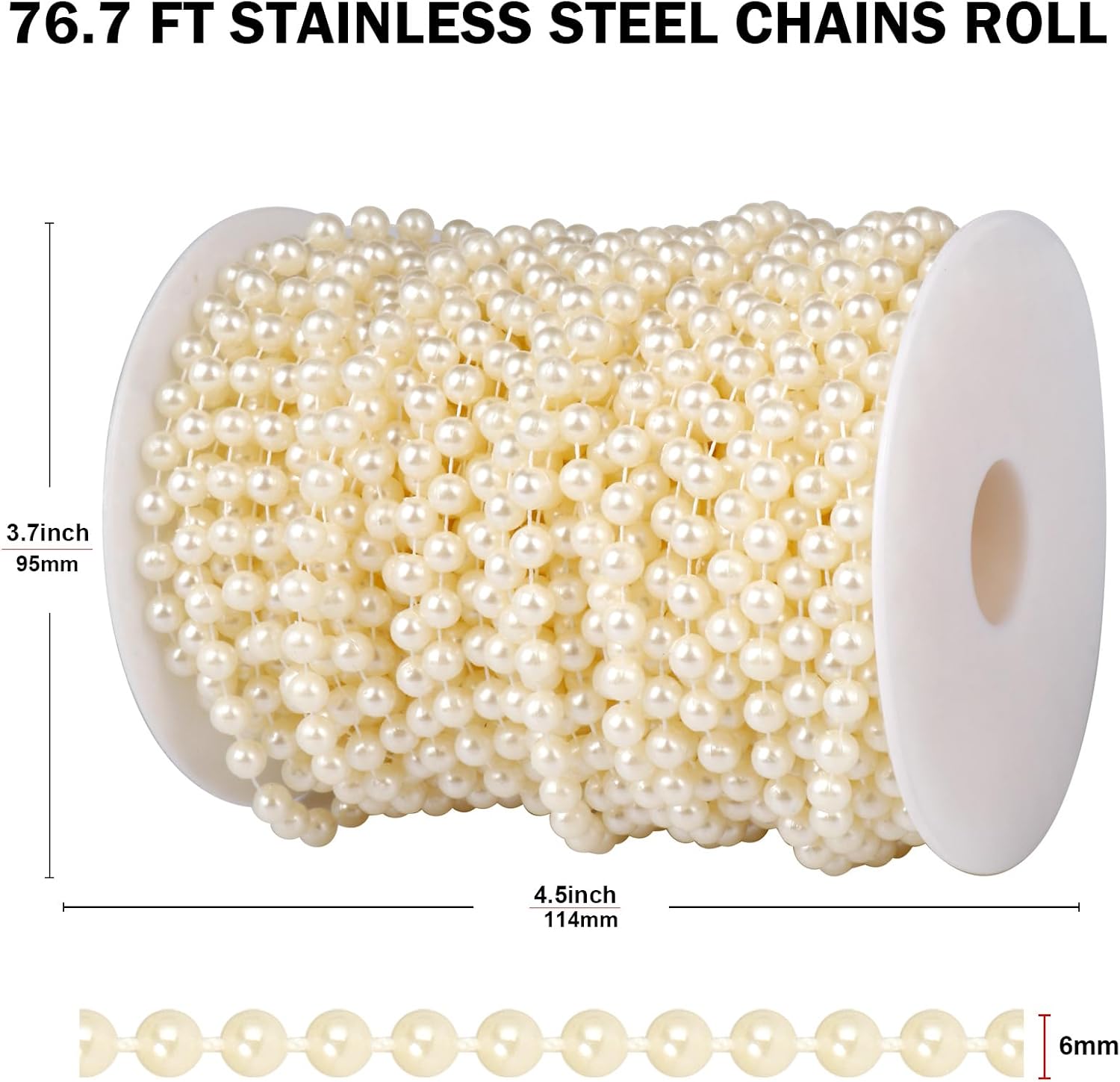 76.5 FT Pearl Beads Garland for Decoration, 6MM Craft Pearl Beads String Spool Ivory Color Faux Pearl Strand Roll for DIY Craft Wedding Party Christmas Tree Decoration