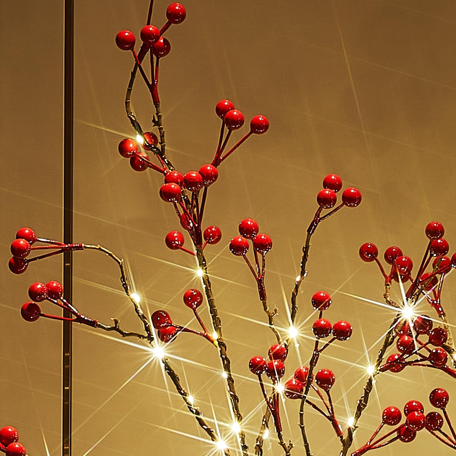 - Christmas lights: Artificial twig branch lights dotted red berries,The Christmas color adds highlights to the holiday.80 LED fairy lights wrapped on the 32in brannches.