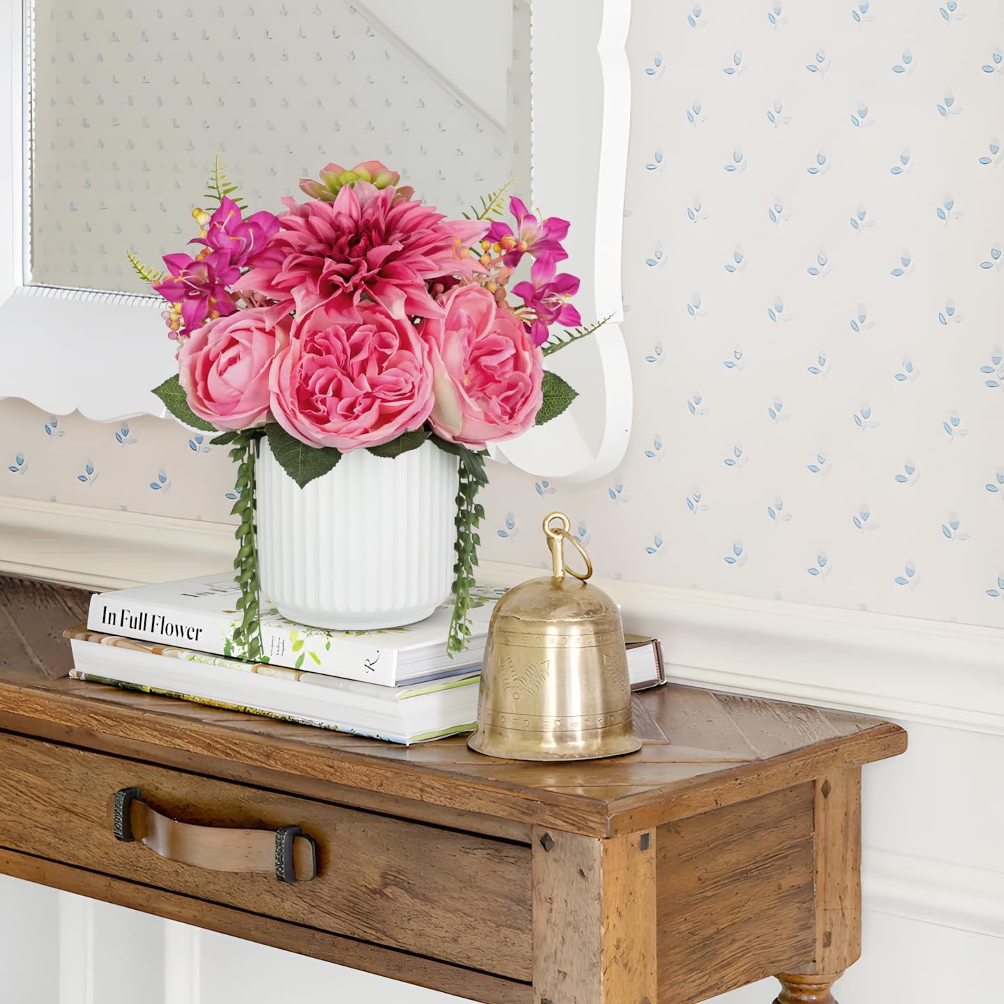- Stylish Ceramic Pot for a Sophisticated Touch: Set in a ribbed white ceramic pot with a minimalist design, this artificial floral arrangement complements modern, farmhouse, or traditional decor. The weighted pot enhances stability while its clean lines elevate the overall presentation.