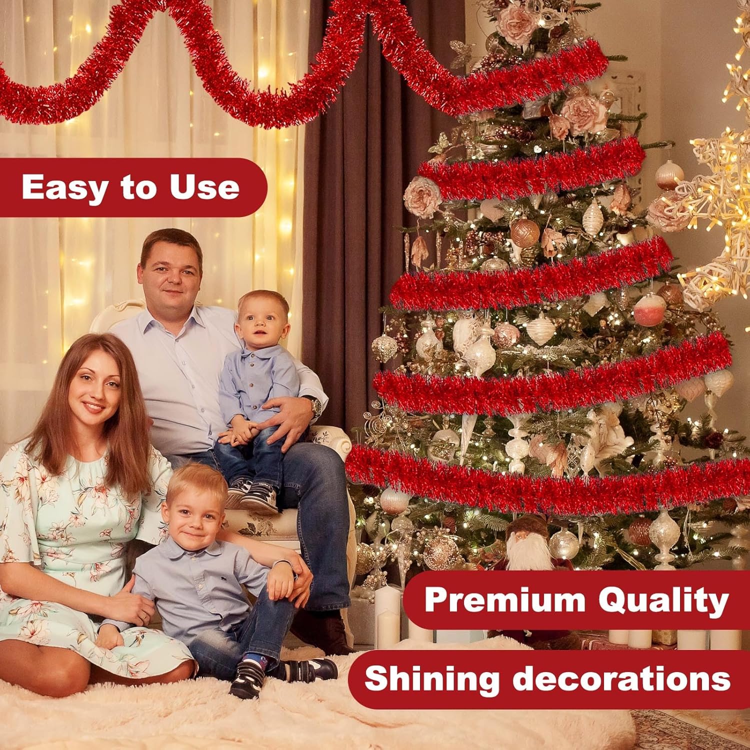 - Easy to Use: You can just hang the tinsel garland ornament on the christmas trees, not need many tools, and if you want to decorate them on the walls or stairs, you can use glue to stick them up, also use scissors to cut to the right length, twist them into various shapes as you like, then hang on to make your home full of joyful feelings