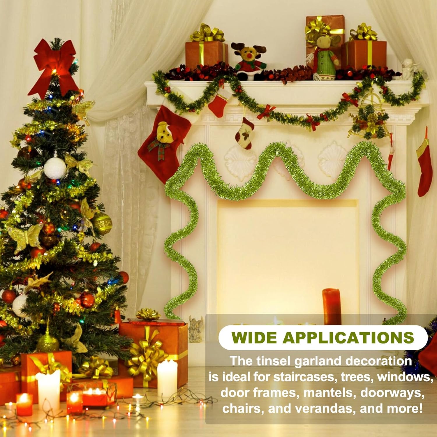 - Easy to Use: You can just hang the tinsel garland ornament on the christmas trees, not need many tools, and if you want to decorate them on the walls or stairs, you can use glue to stick them up, also use scissors to cut to the right length, twist them into various shapes as you like, then hang on to make your home full of joyful feelings