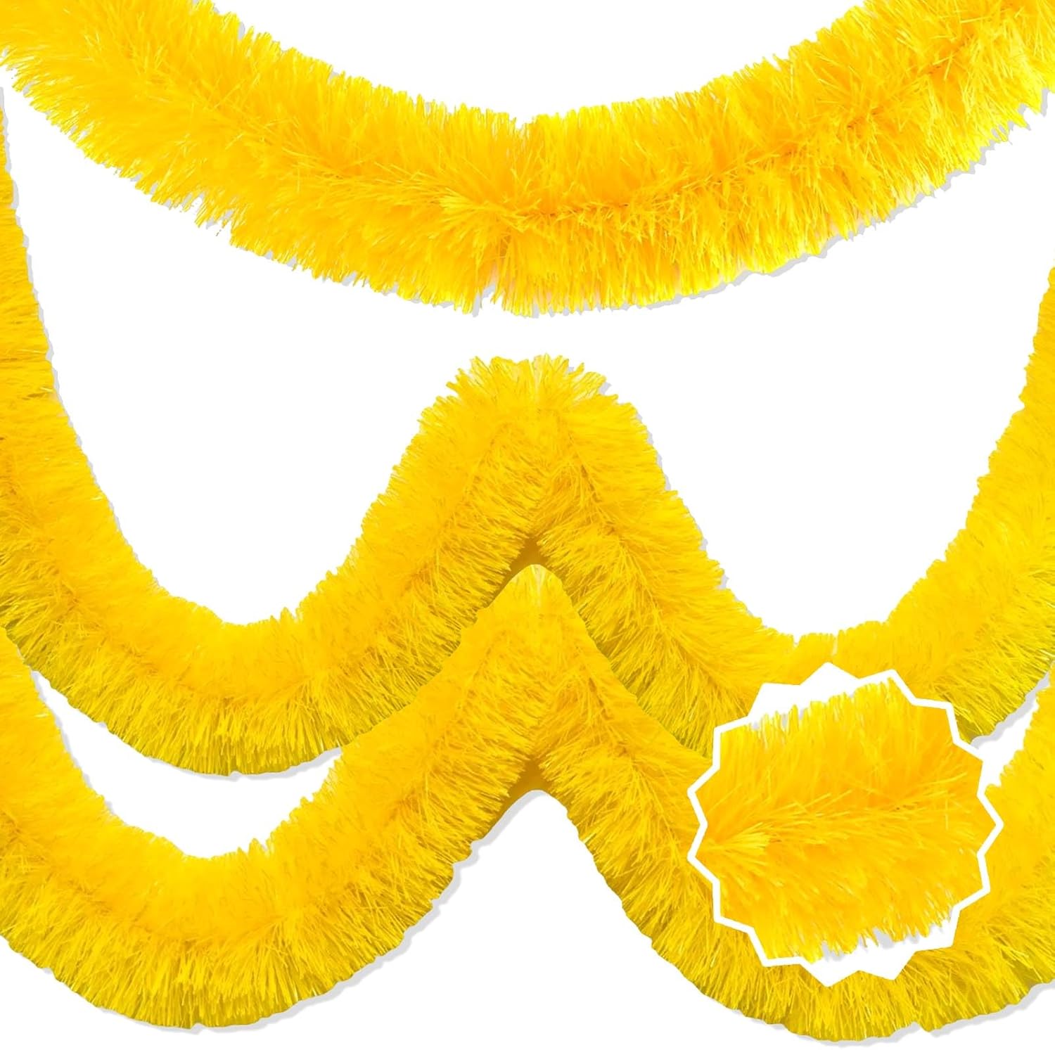 25 Feet Macaron Yellow Christmas Tinsel Garland, Metallic Foil Twist Banner Wall Hanging Tinsel Streamers Backdrop for Parade Floats, Christmas, Mother's Day, Birthday Party Decorations(4in x 25ft)