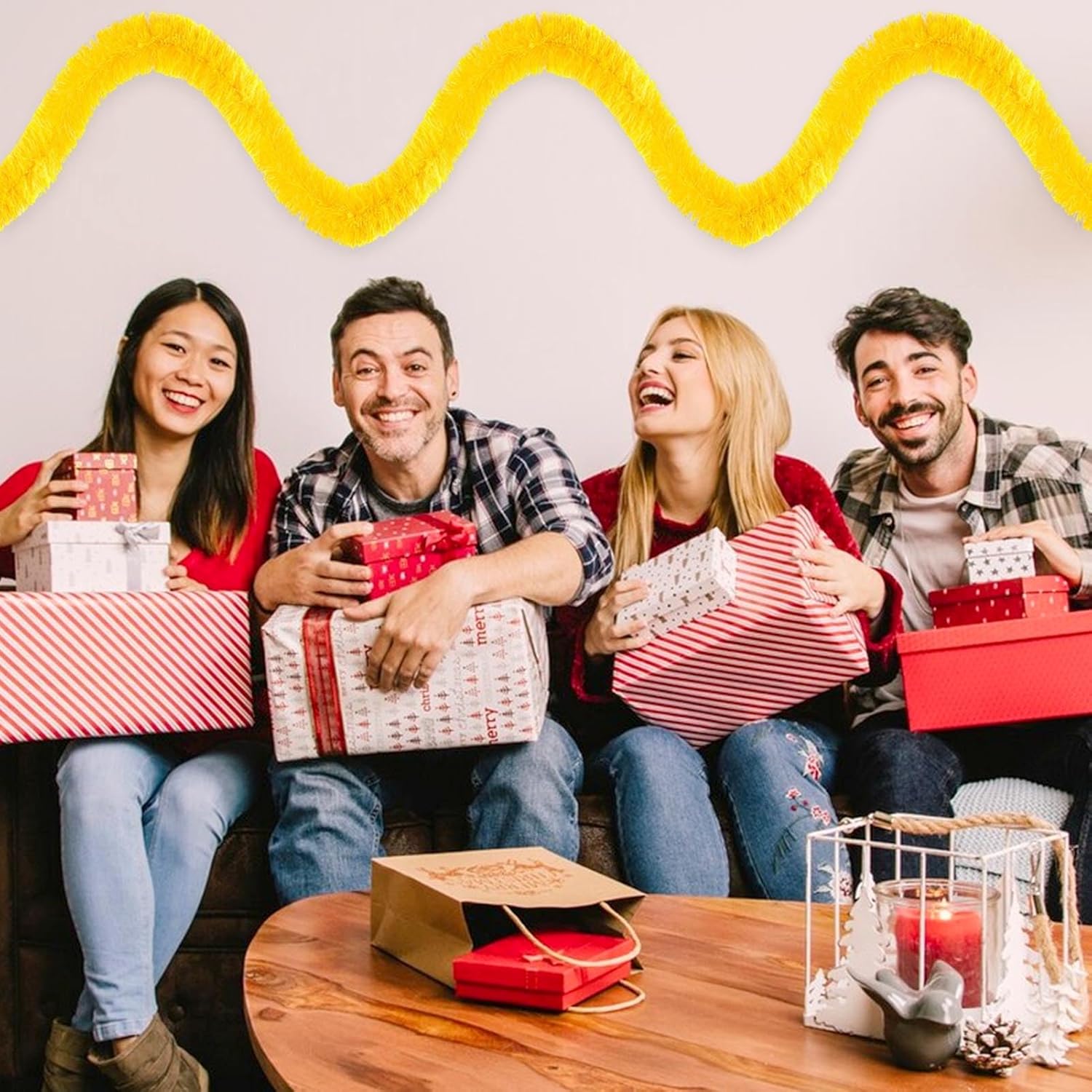 - Applicable Occasions: with exquisite workmanship, these glitter tinsel twist garlands can be hung on your walls, trees, or others; So you can use them to decorate your photo frames, garlands, gift wrapping, decorating tables, Christmas trees, home stairs, and more. This shiny tinsel Foil Fringes garlands is also Perfect for parade floats, as shiny tassel banner, use to run along the top of a backdrop or anywhere you want to add shimmer.