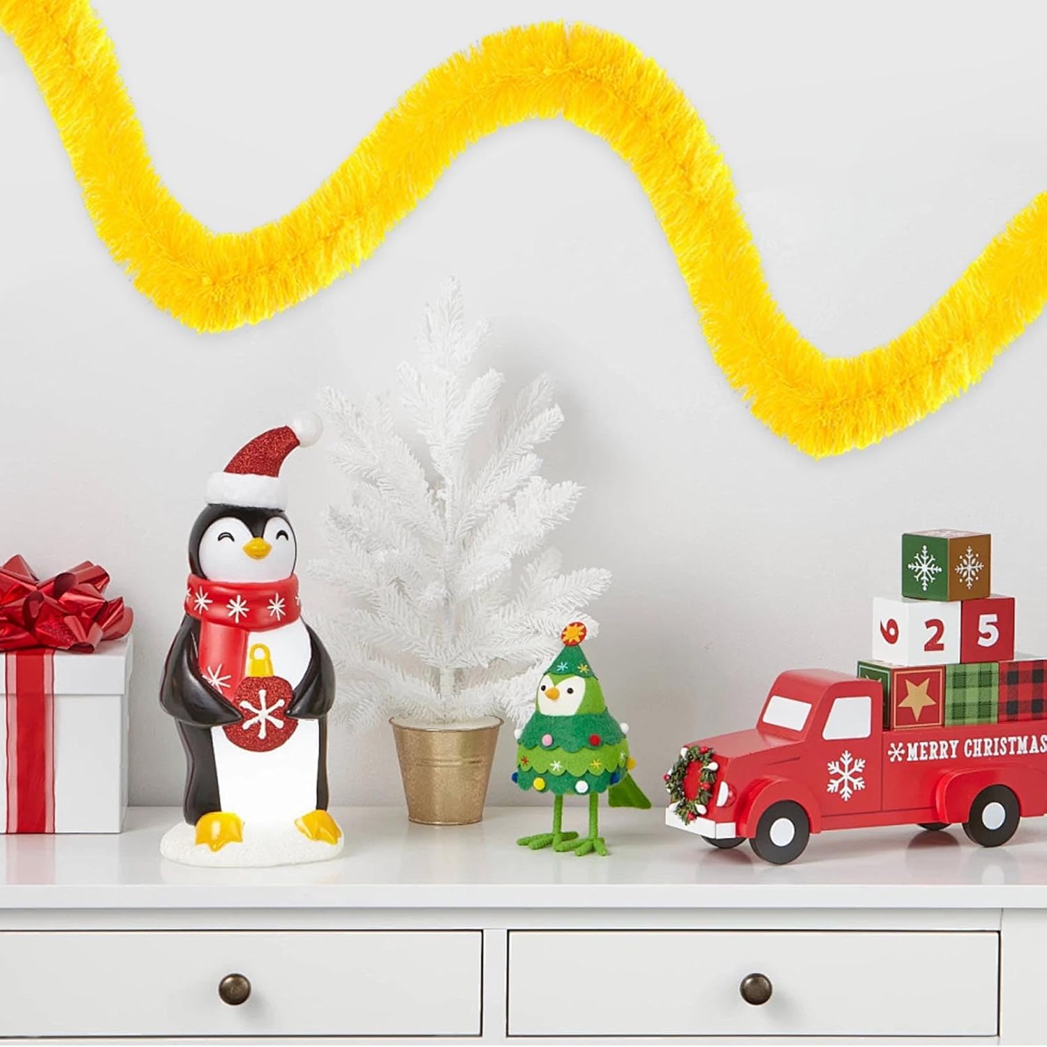 - Quality Material: tree garland Christmas decoration is made from quality PET material that ensures durability and long lasting use; This lightweight yet waterproof tinsel offers you a gorgeous decoration that can provide you with a comfortable decorating experience.