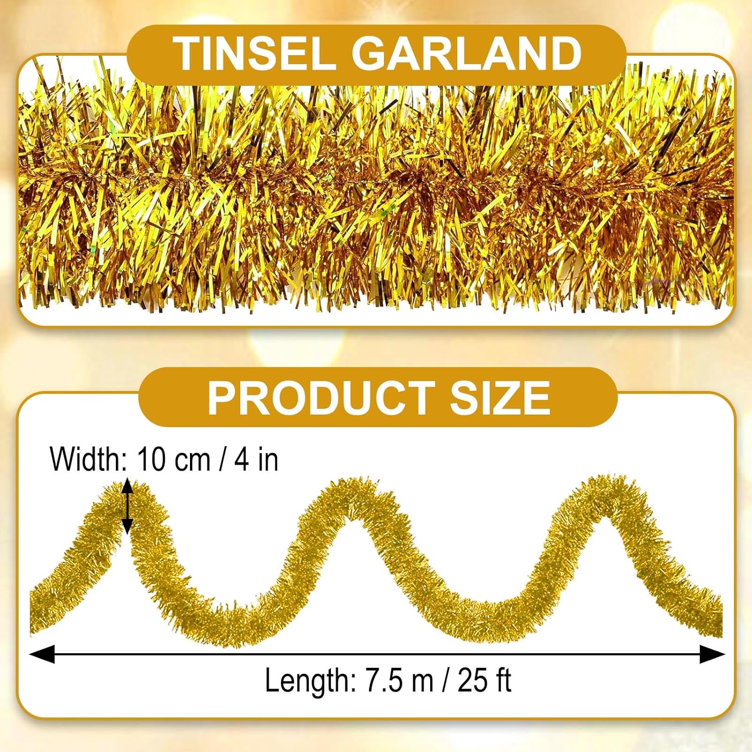 - Package and Size: Package comes with 1 piece christmas tinsel garland, this christmas tree hanging tinsel garland measures approx 7.5 m/ 25 feet in length and 10 cm/ 4 inches in width, long enough to wrap and decorate your christmas tree, its vibrant and shiny color can create a warm holiday atmosphere, you can have a happy party time with families and friends