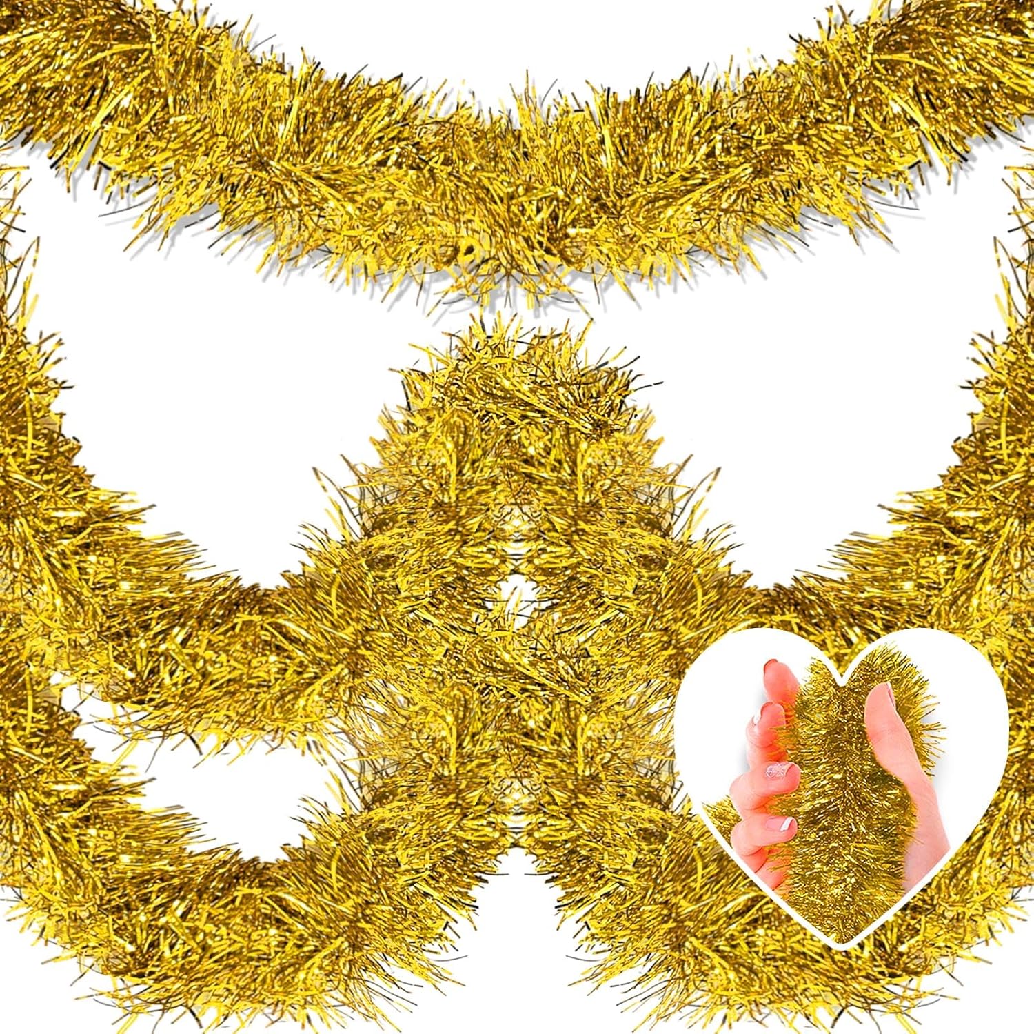 25 Feet Christmas Tinsel Garland, Metallic Twist Wall Hanging Tinsel Backdrop for Parade Floats, Carnival, Birthday, Wedding, New Year Party Decorations (Gold, 4in x 25ft)