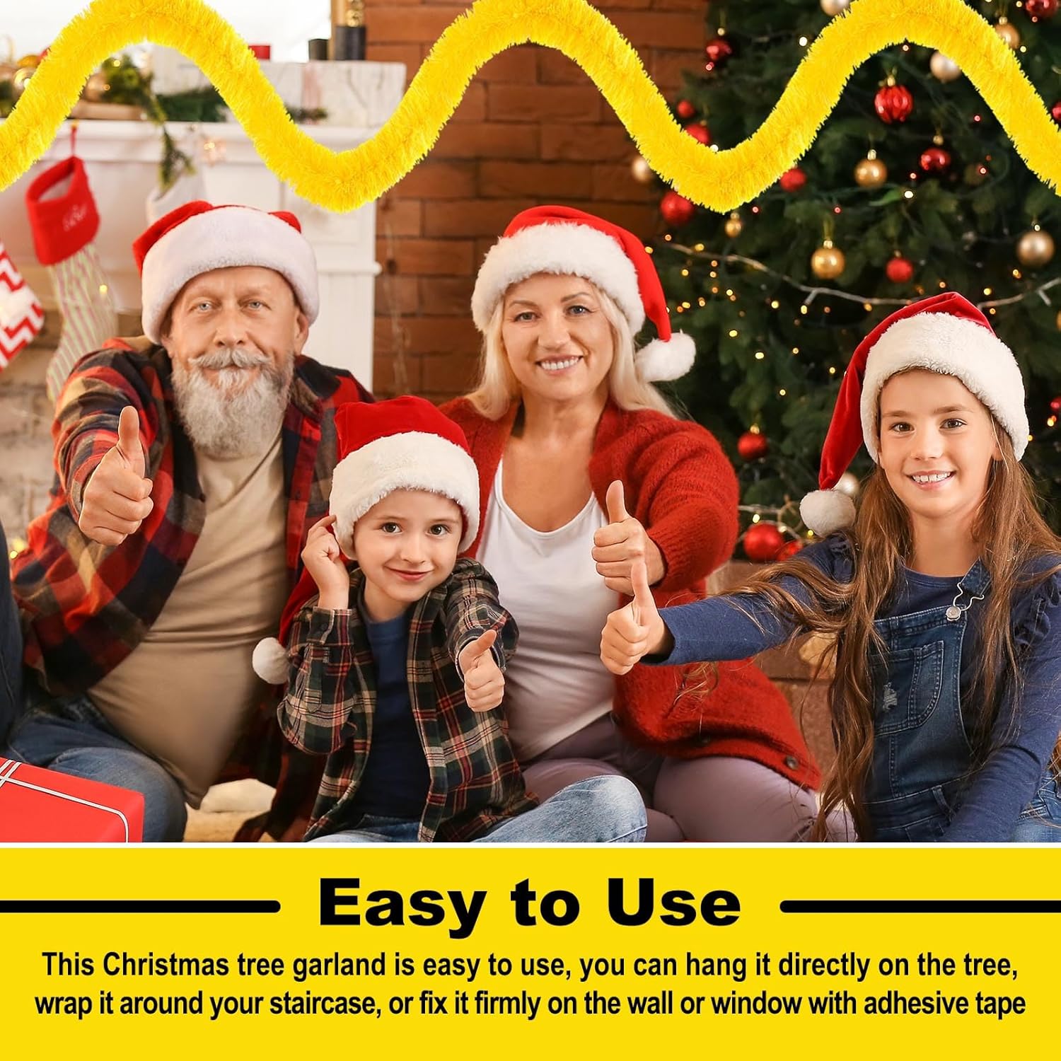 - Easy to Hang: Christmas tinsel garland include a soft, bendable wire inside, and easy to shape as different looks. You can also trim it into different sizes, twist them into various shapes as you like, or with the tape stick it on the wall, window, table, door, rail or any place you like, show the christmas glamour to make your party decoration for the home fun