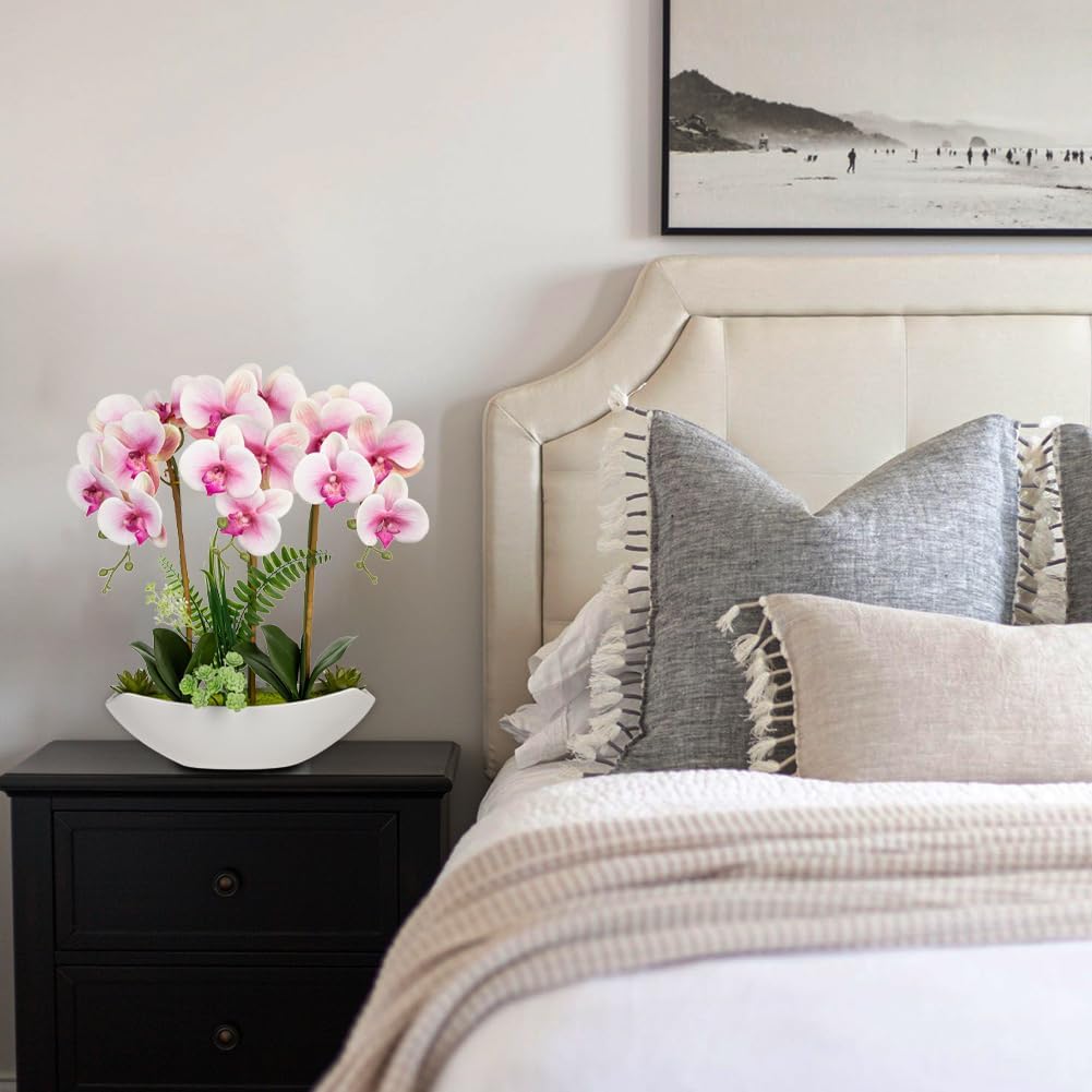 - Dimensions: Standing 18 inches high, the pink orchid flower arrangement includes a ceramic boat-shaped vase that measures 12 inches in diameter, making it an ideal size for various decor settings in both home and office environments.