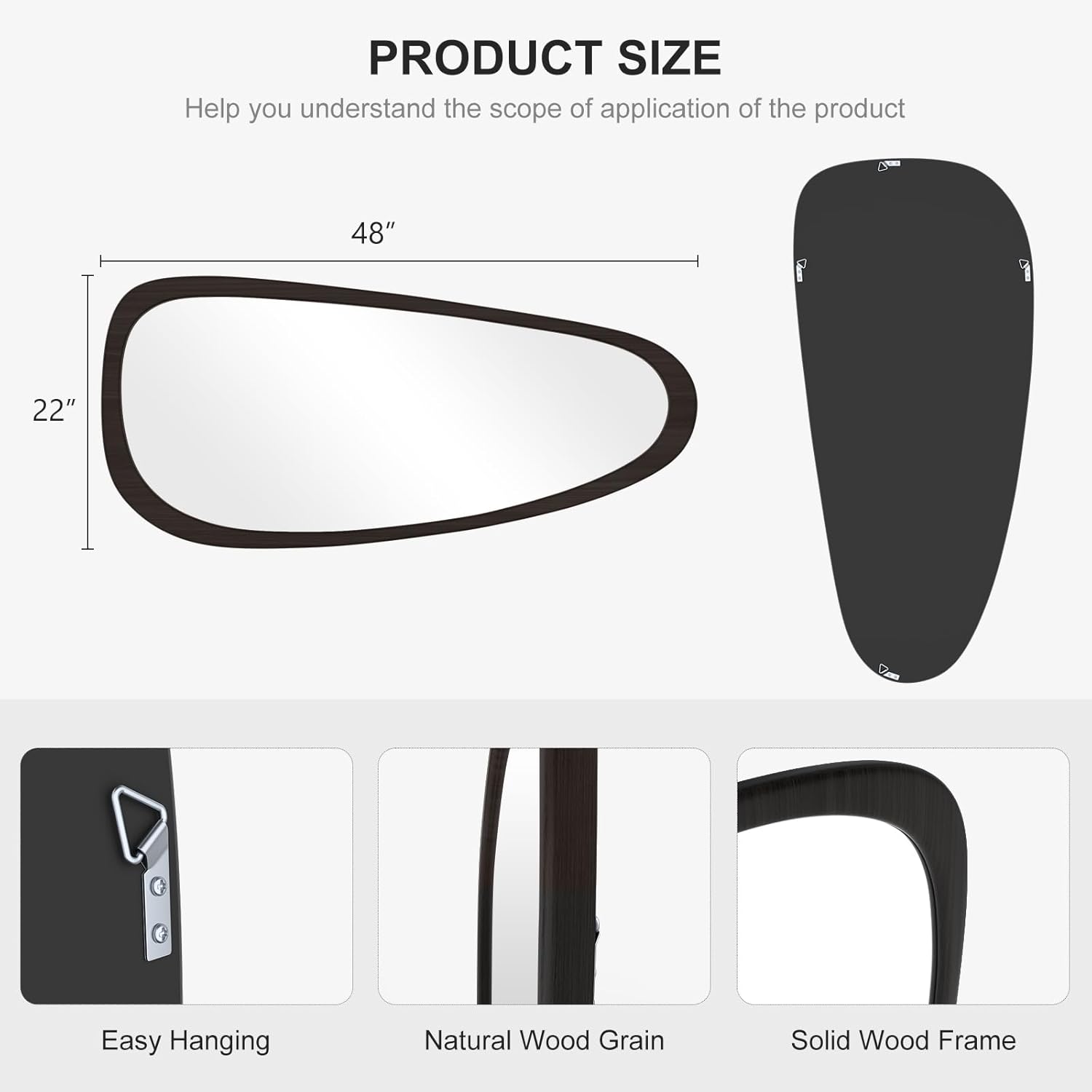 - EXCELLENT QUALITY: Using high quality solid wood frame, HD reflection effect. The asymmetrical wall mirror made with a explosion-proof materials, such as accident damage, the mirror glass will not be scattered around, to ensure your safety!