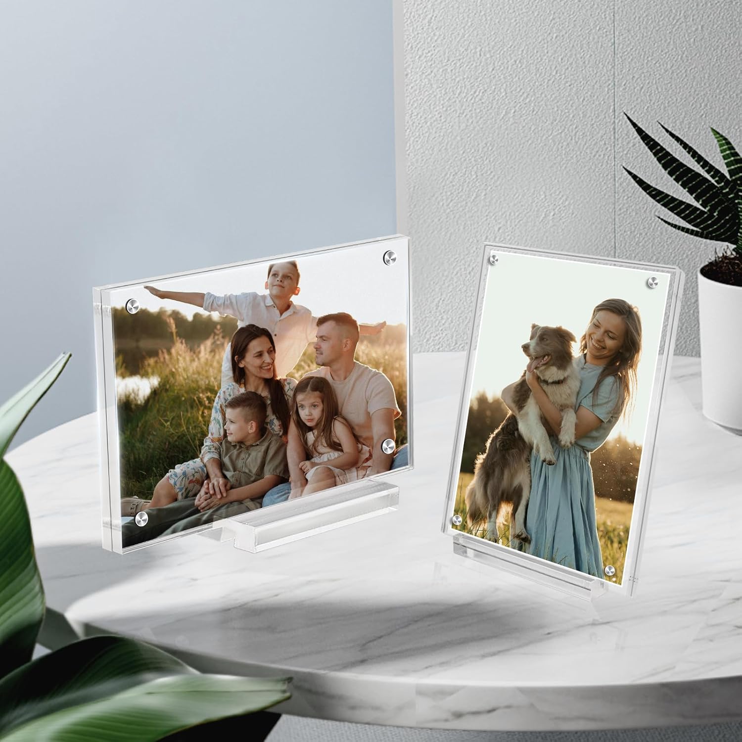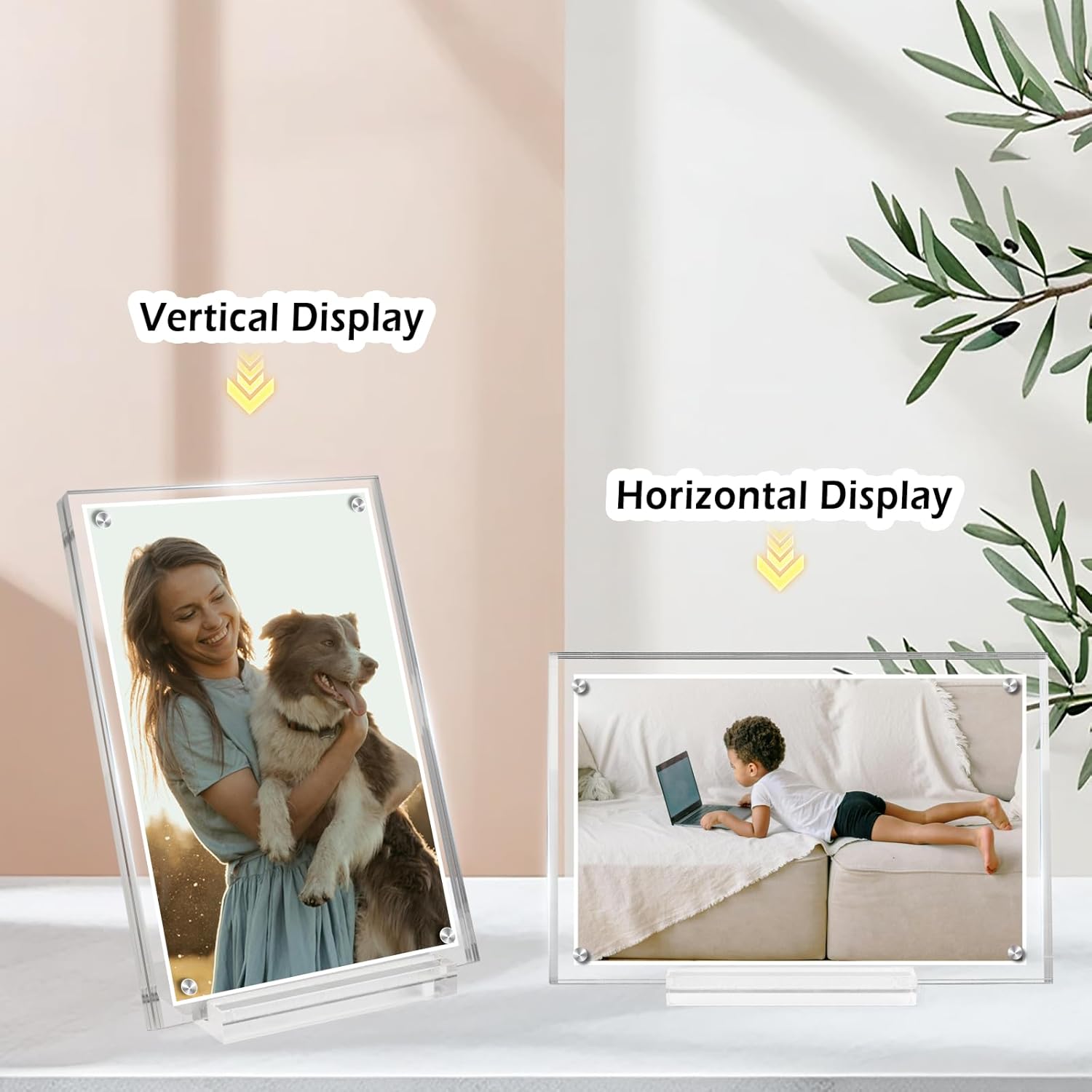 - 4x6 Clear Frames: Measuring 4x6 inches,this frame fits photos of the same size or smaller. It is double-sided visible, and you can display 2 photos