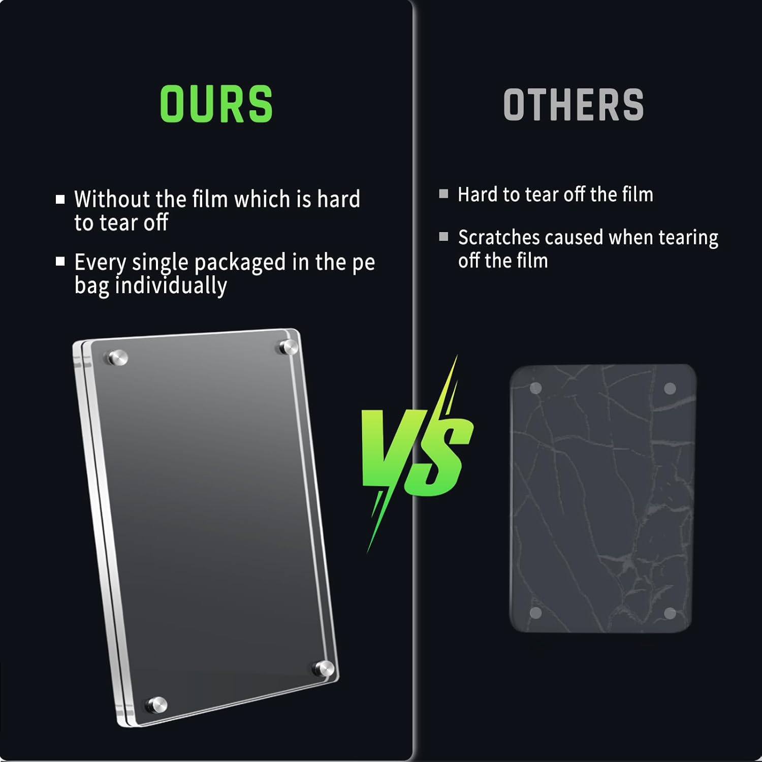 - Magnetic Frames: Each frame consists of 2 acrylic panels held together by four pairs of powerful magnets. This powerful magnetic system securely attaches the frame to metal surfaces like refrigerators, keeping your photos in place
