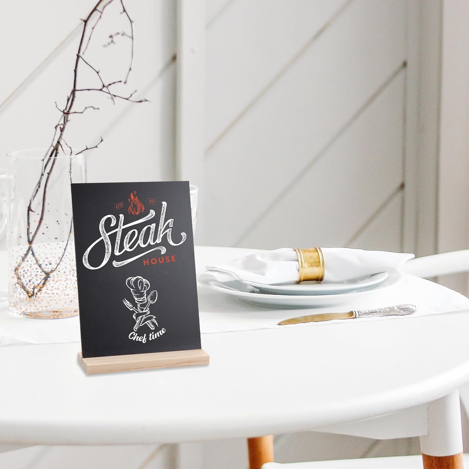 - [DETACHABLE TABLETOP CHALKBOARD]: The 6 x 9-inch chalkboards with stands can be easily removed from the base, allowing for compact storage and convenient portability. This feature makes it effortless to write or clean the tabletop chalkboard sign, ensuring a hassle-free experience.