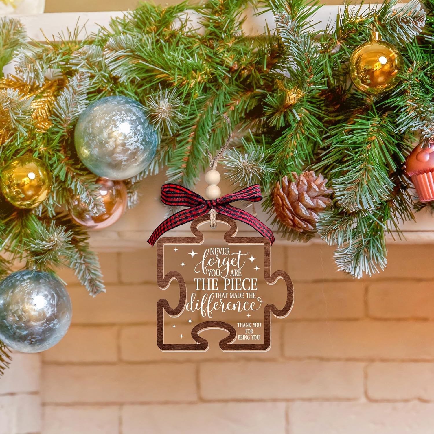 Pawzity Thank You Gifts - Never Forget You are The Piece That Made The Difference Ornaments - Appreciation Gift for Women Coworker Friend Teacher Boss Nurse - Wood Acrylic Thank You Christmas Ornament