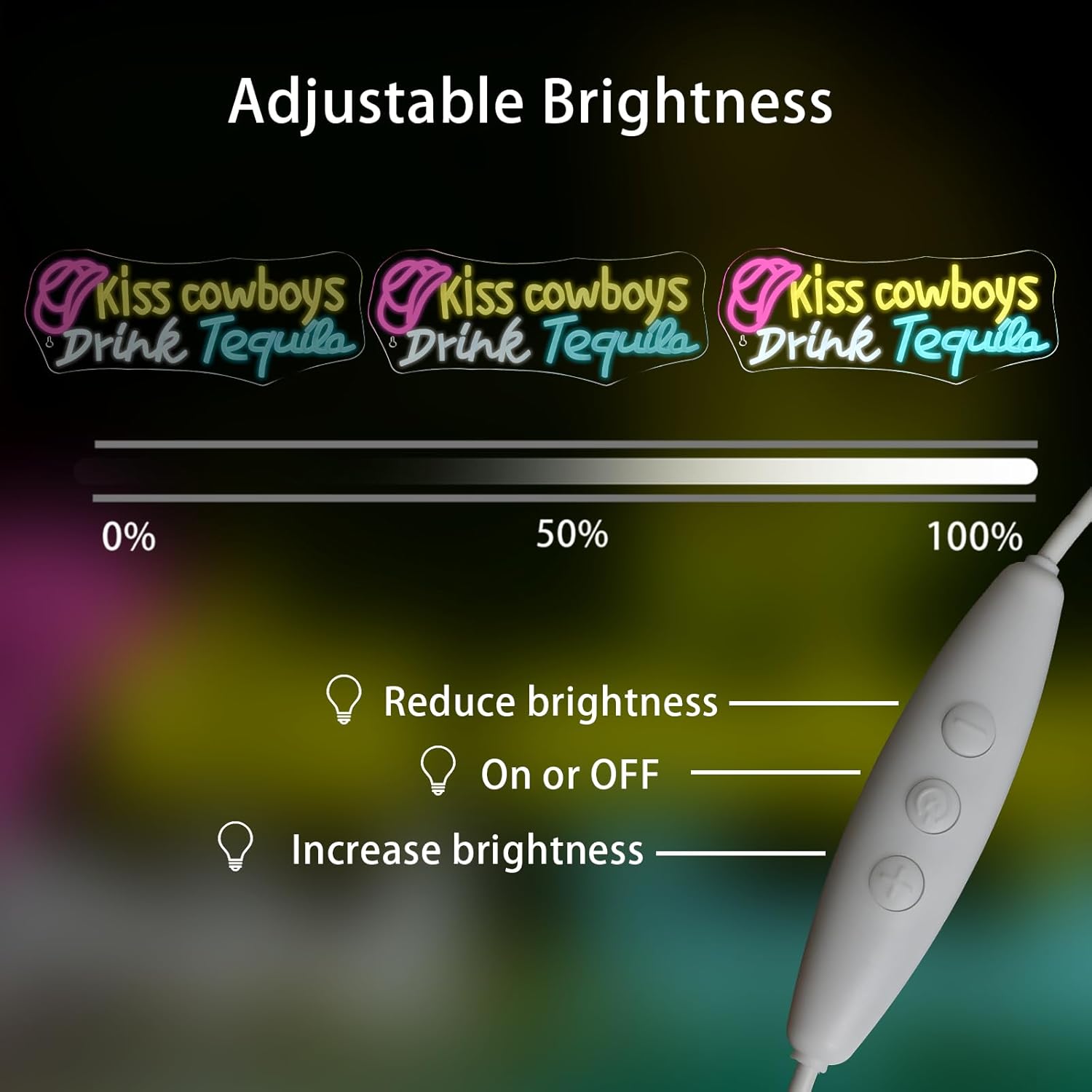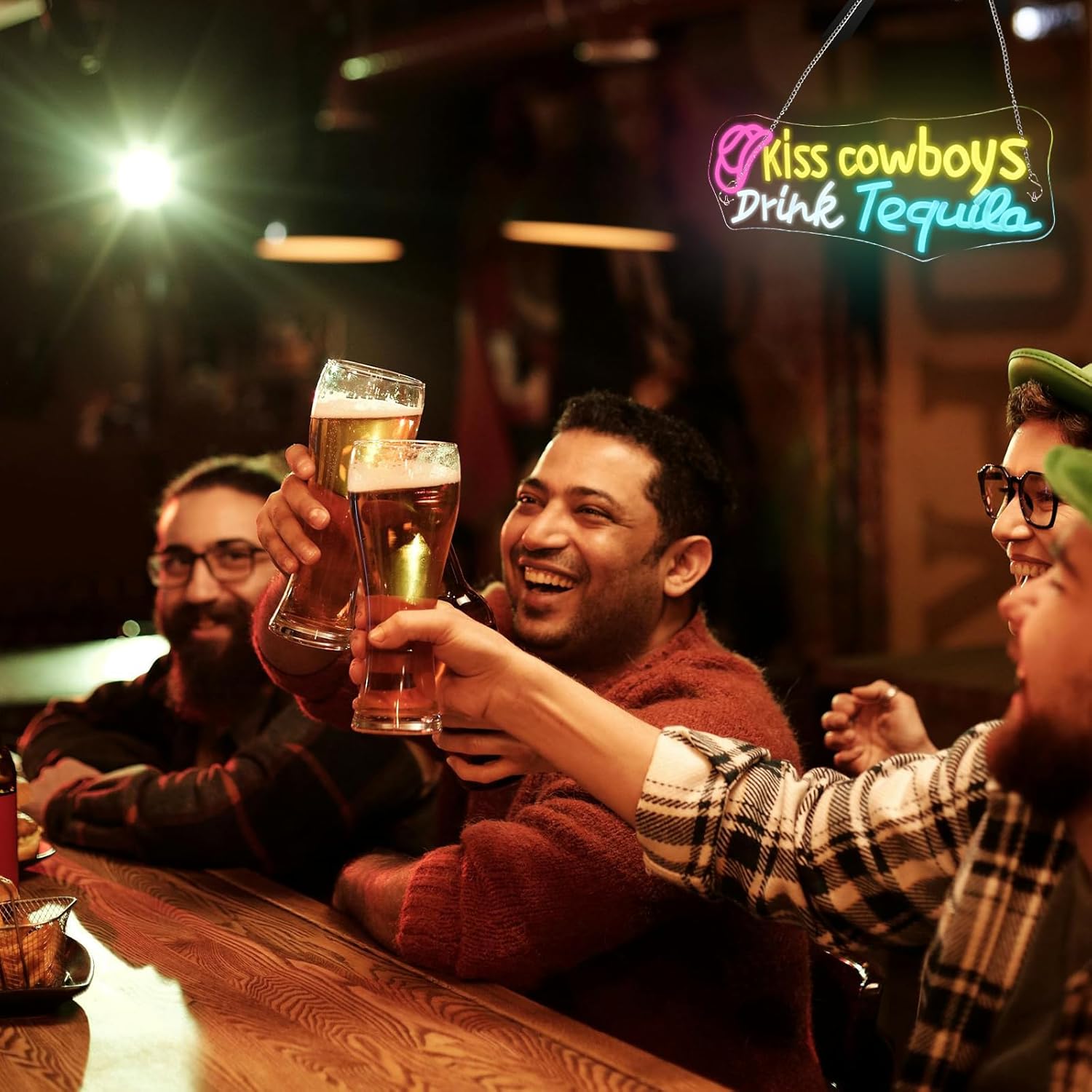 - Kiss Cowboy Drink Tequila: A perfect neon sign can create a tipsy vibe and enthusiasm atmosphere! Colorful light halos are more attractive to customers.Newly upgraded color leather light strip,the halo is more vivid!