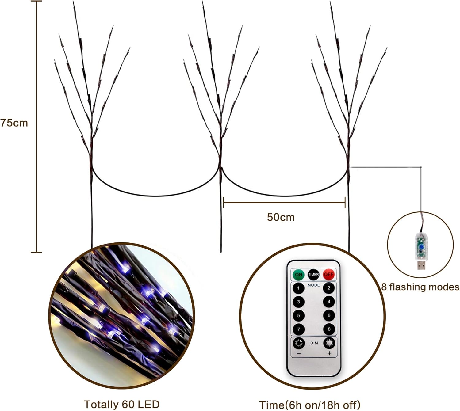 - 🎄【TWIG TREE LIGHT】3pcs branches are included,Each willow branch light comes with 5 bendable stems, 30 inches tall, 60 LED blue color light bulbs are enough to create a relaxed and warm atmosphere.