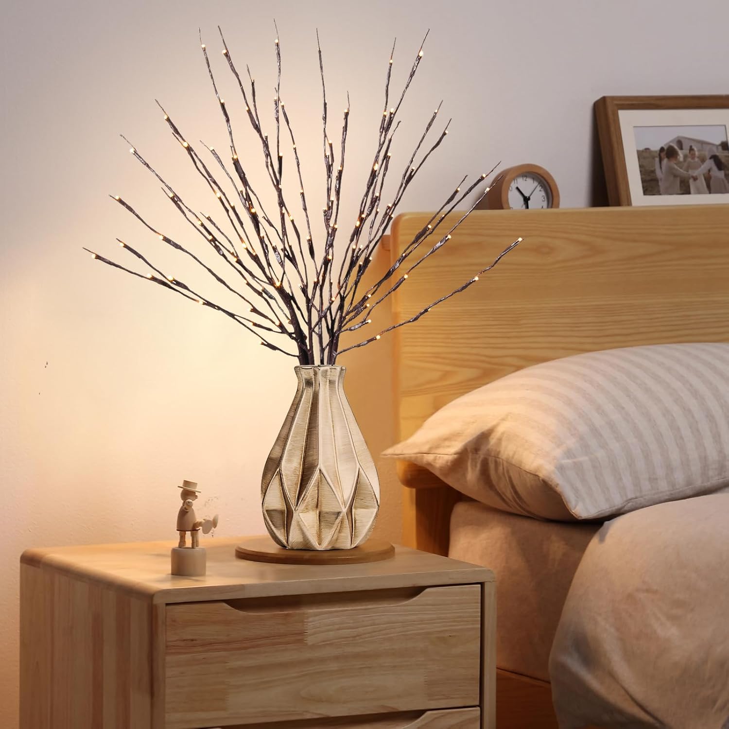 - 🎄【TWIG TREE LIGHT】6pcs branches are included,Each willow branch light comes with 5 bendable stems, 30 inches tall, 120 LED pure white color light bulbs are enough to create a relaxed and warm atmosphere.