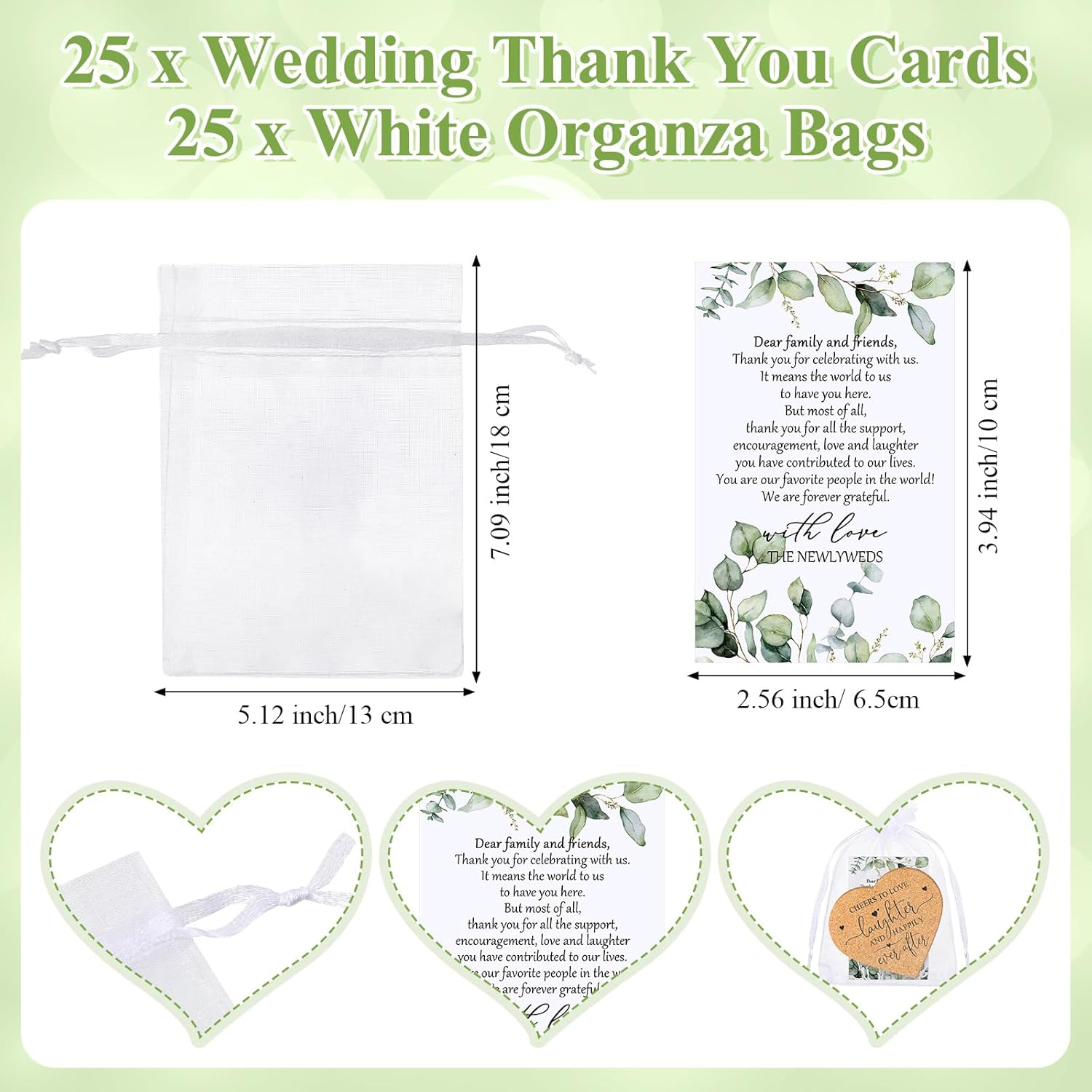 - Wedding Favors for Guests: the package includes 25 heart shaped coasters, 25 thank you cards, and 25 organza bags; All these are packed together elegantly, redefining the essence of a functional and delightful gift for your family, friends, and neighbors