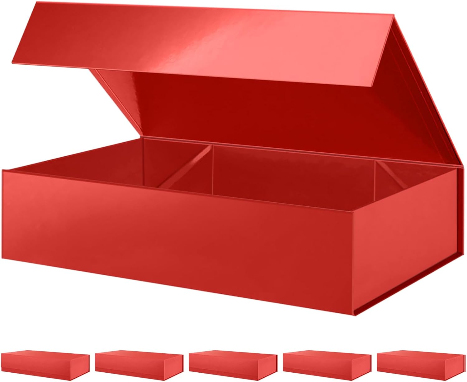PACKHOME 6 Extra Large Gift Boxes 17.5x11.3x4.3 Inches, Sturdy Shirt Boxes with Magnetic Lids for Clothes and Large Gifts (Glossy Red)