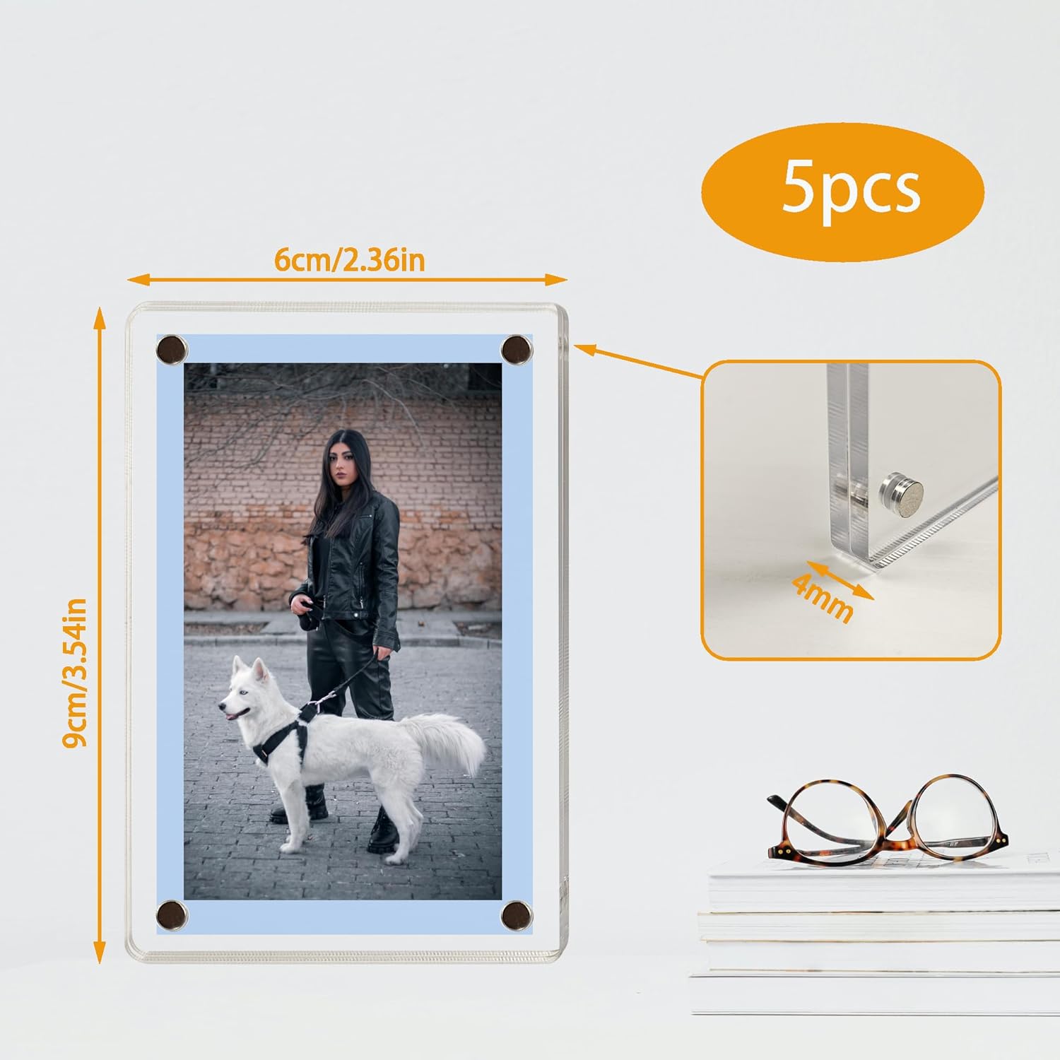 5 Pack-Polaroid Magnets for Refrigerator Acrylic Fridge Magnetic Frame 2.36 x 3.54 Inch Clear Picture Frames for-Polaroids-Fujifilm-instax Mini Film(5pcs Clear, 2.36x3.54 inch)