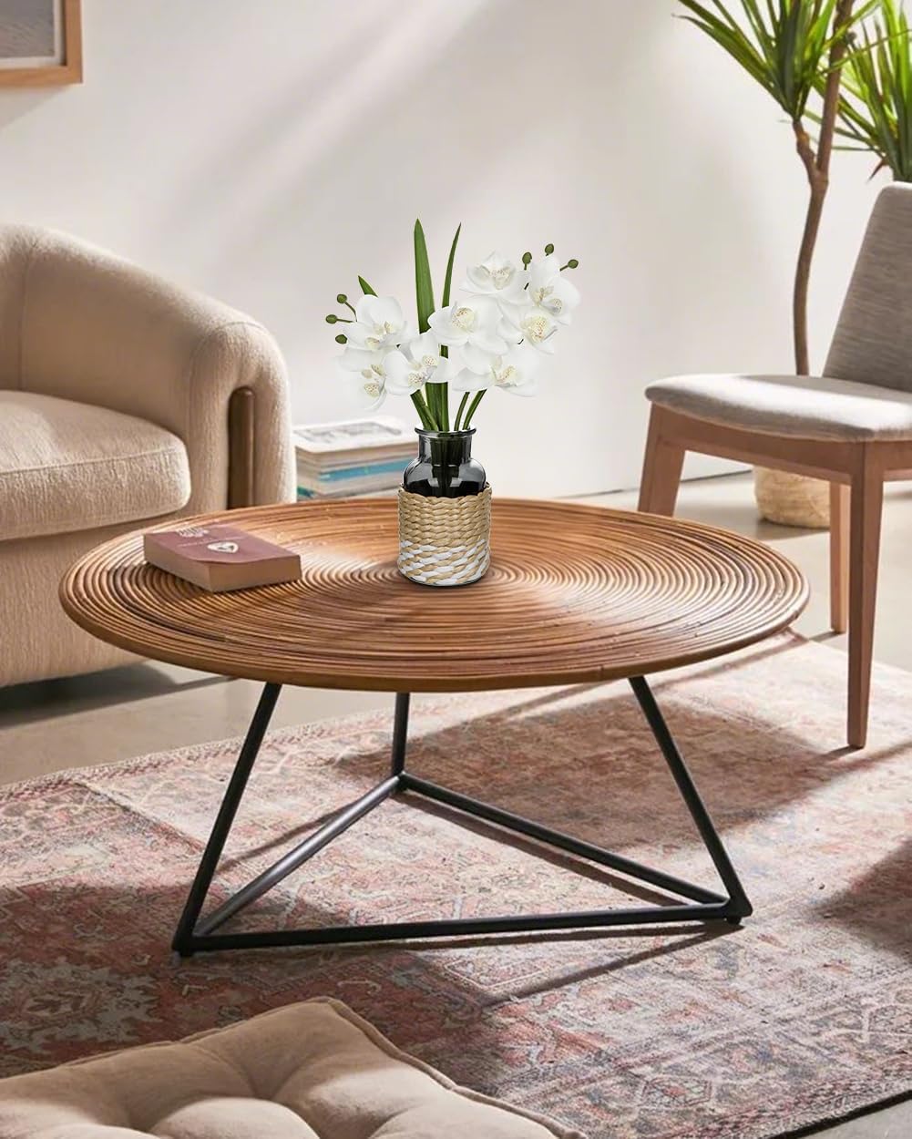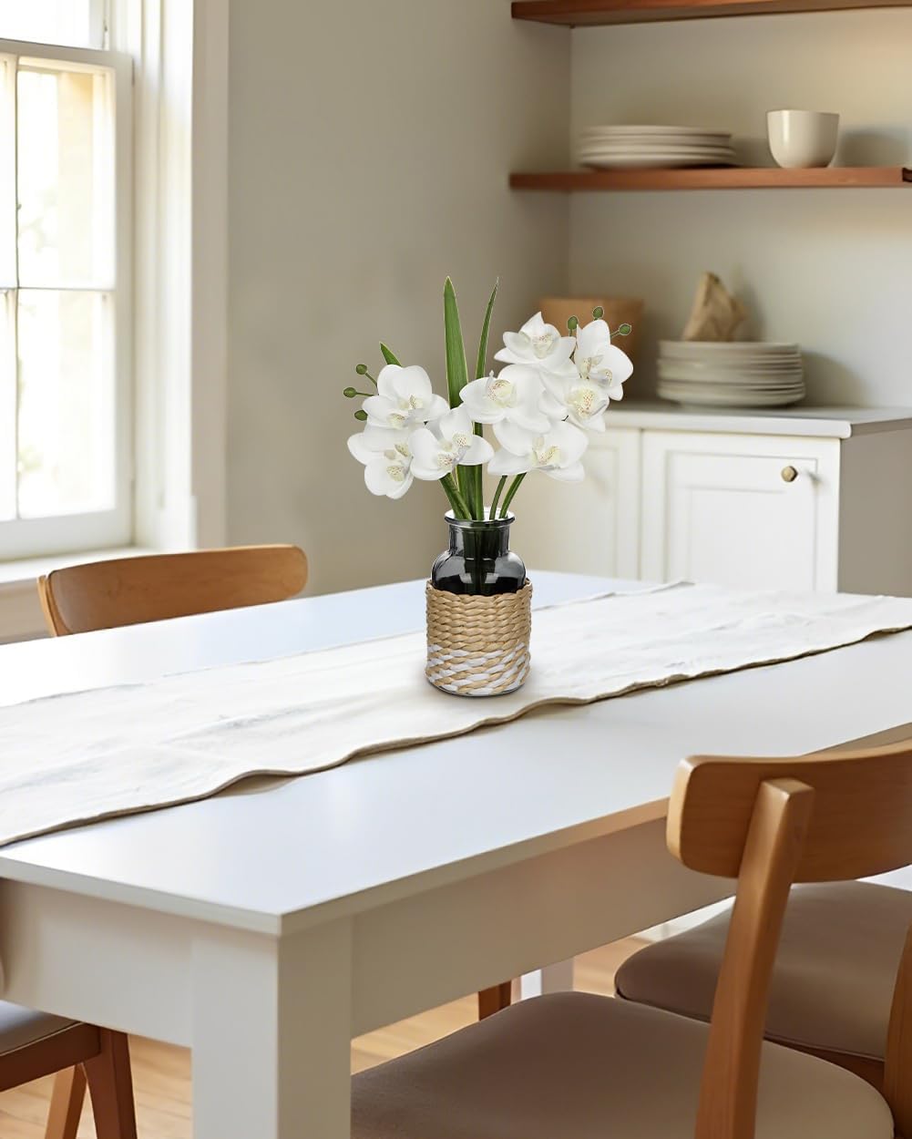 - Artificial Orchids with Vase - This white orchids for centerpieces has 8 eye-catching bloomed white orchid flowers, with lifelike orchid branche, leaves and buds, are displayed in a black glass vase perfectly, which wrapped in hand-woven jute twine , it enhance the taste of home decoration.This white orchids arrangements is an ideal gift for your lovers/family/friends on Mother's Day, Anniversary, Housewarmings, Birthday (the orchid branches cannot be takend out)