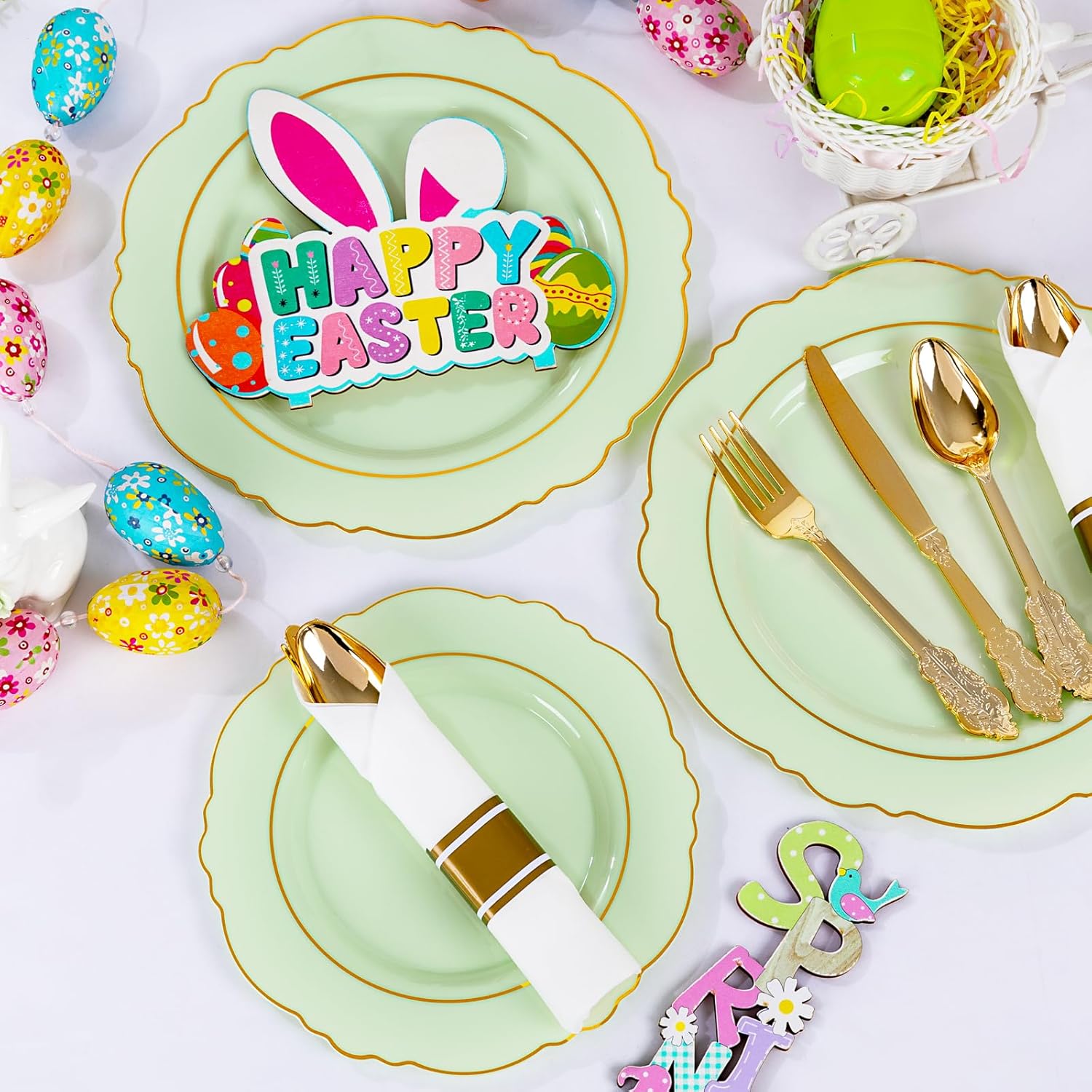 - EASY TO CLEAN - Disposable plates set features a gold-rimmed design that adds an elegant flavor, and sage green plates are easy to use No need to wash them after use, easily solving the cleaning problem and sage green plates letting you focus on enjoying every moment of the event